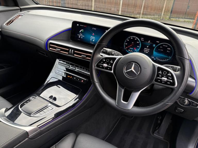 Stunning EQC, Battery tested with Certificate 96% SOH, This 2021 Mercedes Benz EQC 400 Sport is a superb example, having been owned by just one person since new. This electric vehicle boasts a substantial 88 kWh battery, offering a maximum range of 255 miles when new. Its Four Wheel Drive system ensures confident handling in various conditions. Inside, you'll find a premium Mercedes Benz Sound System and the comfort of Heated Front Seats. The KEYLESS GO Comfort Package provides effortless entry, while the Parking Package with Reversing Camera makes manoeuvring simple. For added safety, it includes Blind Spot Assist.Stunning 1 Owner EQC with 96% State of health Battery (Certificate included) Experience the impressive performance of this EQC, capable of accelerating from 0 to 62 miles per hour in a swift 5.1 seconds. Charging is convenient, with a full charge at home taking approximately 12 hours and 13 minutes using a 7kW charger, and a rapid charge to 80% achievable in just 45 minutes at a public charging station. This model also features a generous boot space, making it practical for everyday use and longer journeys. These attributes demonstrate how this Mercedes Benz EQC stands out from other similar vehicles.