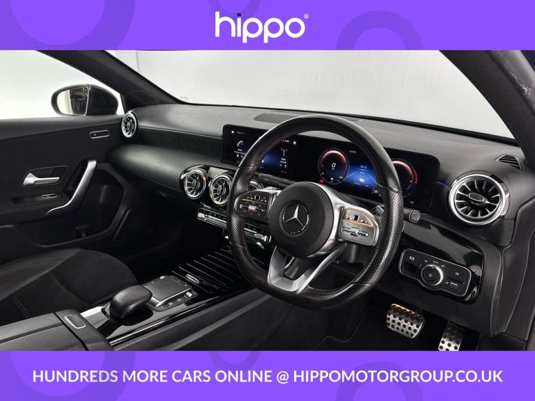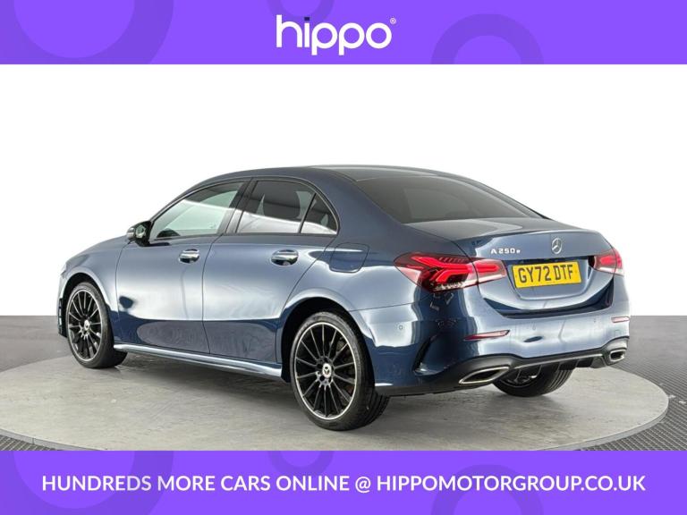 Presenting this Mercedes-Benz A Class 1.3 A250e 15.6kWh AMG Line Night Edition (Premium Plus) Saloon, finished in striking Denim Blue with 19-inch AMG multi-spoke alloy wheels in black and high-sheen rim flanges for a refined presence on the road. This petrol plug-in hybrid is equipped with an 8G-DCT automatic transmission and meets Euro 6 (s/s) compliance, delivering an impressive 218 PS for an efficient yet dynamic drive. Enjoy the light and space provided by the panoramic glass sunroof, enhancing both driver and passenger experience. This vehicle has covered 29,348 miles and benefits from a comprehensive service history, with three recorded services, the most recent carried out at 24,000 miles. Hippo Approved is known for a wide selection of vehicles suited for various needs and budgets. Each car undergoes a rigorous 130-point quality and safety inspection at our state-of-the-art £3 million preparation centre, ensuring your peace of mind. Additionally, we offer tailored finance packages for personal and business use, making it easy to acquire your ideal car.