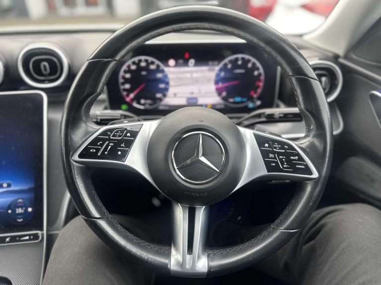 This 2022 Mercedes Benz C Class C200h Sport is a Mercedes Benz manufacturer approved vehicle with a full dealership service history and an MOT valid until February 2027, offering excellent peace of mind. This Euro 6 compliant model boasts a 1.5 litre petrol hybrid engine and has covered a low mileage of just 29,978 miles, having had only one owner since new. Inside, you'll find comfort and convenience with heated front seats, THERMATIC two zone automatic climate control, and a parking package complete with a reversing camera to aid manoeuvring.The C200h Sport also features Blind Spot Assist, enhancing safety during your journeys. With an impressive acceleration of 0-62mph in just 7.3 seconds, this vehicle offers a dynamic driving experience that sets it apart from others. Its combination of efficient hybrid technology, luxurious Mercedes Benz refinement, and comprehensive provenance makes it a standout choice.