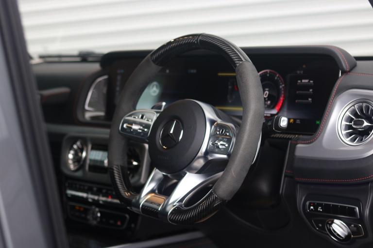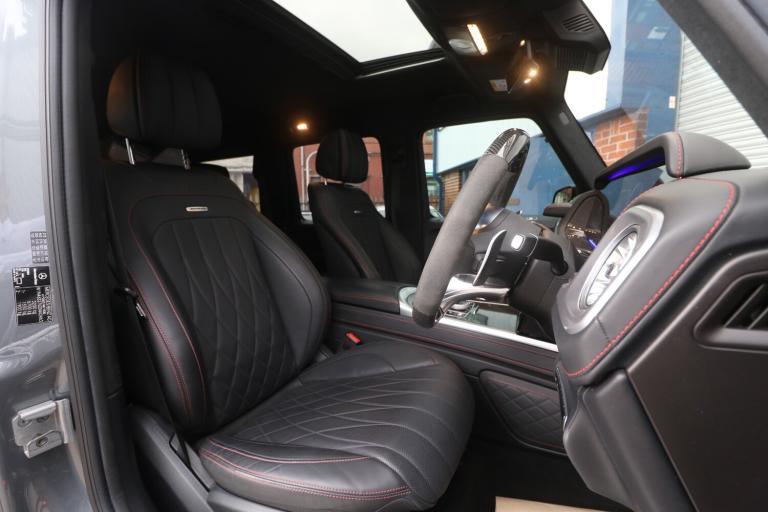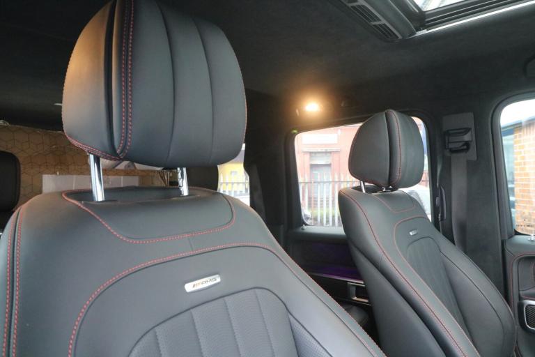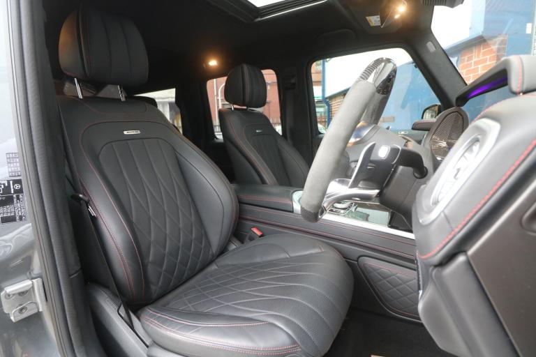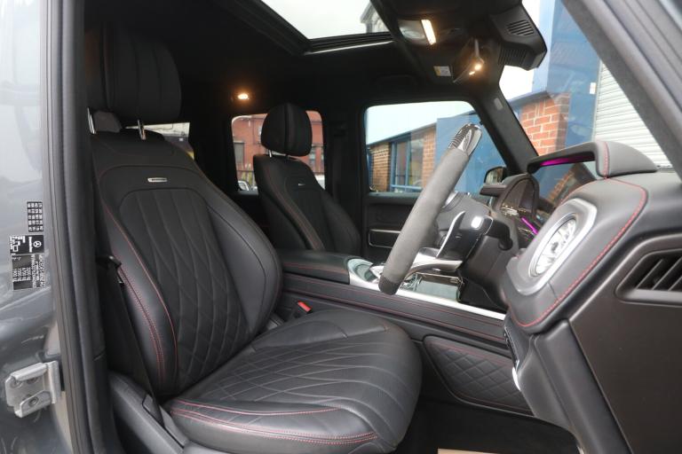 2022 (22) Mercedes-Benz G Class 4.0 G63 V8 BiTurbo AMG Carbon Edition SpdS+9GT 4MATIC Euro 6 (s/s) 5dr, 1 OWNER FROM NEW, FULL MERCEDES SERVICE HISTORY, JUST BEEN SERVICED AT MERCEDES, VEHICLE HAS BEEN FULL PPF ON THE CAR COSTING £5000+ INCLUDING WINDSCREEN PPF, G MANUFACTUR PACKAGE, VEHICLE HAS A TRACKER. PANORAMIC GLASS SUNROOF, 360 CAMERA, CARBON INTERIOR WITH CARBON INLAYS, BURMESTER SURROUND SOUND SYSTEM, HEATED & COOLED SEATS, ELECTRIC SEATS WITH MEMORY PACKAGE, REAR HEATED SEATS. Steel - Illuminated,AMG Floor Mats with AMG Lettering,AMG High-Performance Brake System,AMG Instrument Cluster with Dual Bonded 12.3in Widescreen Displays,AMG Performance Exhaust System - Selectable and Two Chrome-trimmed Twin Tailpipes - Left and Right,AMG Performance Steering Wheel in Carbon Fibre - DINAMICA Microfibre,AMG RIDE CONTROL Suspension with DYNAMIC SELECT,AMG Specific Analogue Clock Featuring IWC Design,AMG Steering Wheel Buttons,AMG-Specific Radiator Grille with AMG Logo,ATTENTION Assist,Active Blind Spot Assist,Active Brake Assist,Active Lane Keeping Assist,Adaptive Brake Assist with Hold Function - Hill-Start Assist - Priming and Dry Braking in the Wet,Adaptive Highbeam Assist Plus,Airbags - Driver and Front Passenger,Airbags - Front Side,Airbags - Rear Sidebags,Airbags - Windowbags,Ambient Lighting - Choice of 64 Colour Settings,Ambient Lighting with Projection of Brand Logo,Anti Theft Alarm System with Tow-Away Protection and Interior Motion Sensor - Thatcham Category 1 Compliant,Automatically Dimming Rear View Mirror,Bluetooth Interface for Hands-Free Telephone, Bumpers - Painted in Body Che use of Mercedes me Connect Services,Cruise Control with Variable Speed Limiter,Cup Holders - Front x2 and Rear x2,DAB Digital Radio Tuner,Dashboard - Nappa Leather,Differential Locks - Transfer Case - Front and Rear Axle,Door Mirrors - Electrically Adjustable and Heated, Driving Assistance Package,PLEASE CALL 0161 655 3647 OR [Phone number removed] TO ARRANGE A VIEWING