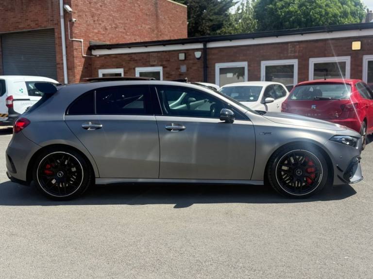 Here we have a Mercedes A45S PLUS Petrol finished in Magno Grey Paint in very clean condition with Full Mercedes Service History, 1 Owner from new, 2 Keys, Full Mercedes Service History and 1 Year AA Breakdown Cover. The interior and exterior of the car have been looked after very well, it starts and drives perfectly with no issues at all. The vehicle has a huge spec including: Electric Sliding Sunroof including Sun Blind, Heated Leather Electric Memory Seats, Ambient Lighting, Virtual Cockpit, Heads up Display, Burmeister Sound System, Track Pack, Navigation, Apple CarPlay, Folding Mirrors, 360 + Reverse Camera, Cruise Control, Bluetooth and much more. We also offer Part Exchange / Delivery / Finance, HPI report available on request. Please call us on [Phone number removed] for further enquiries. =============================================================================== Why not read our AutoTrader reviews to see what our customers think about their experience here and why they choose to buy from us? =============================================================================== Please contact our sales department for the latest finance offers on this vehicle. We have a dedicated team researching our used car prices daily to make sure we offer the best value cars in the market, =============================================================================== To arrange a personal viewing of this amazing car, or if you would like a tailored video to be emailed to you then please contact us. =============================================================================== Please give us a call for directions. Our postcode for Sat Nav direction is B25 8EL. • Finance subject to status, T&Cs apply. , ===============================================================================.19in Alloy Wheels - AMG Cross-Spoke Forged Design - Painted Matt Black with a High-Sheen Finish Rim Flange, ABS - Anti-Lock Braking System with BAS - Brake Assist, AMG A 45 S Bodystyling, AMG Aerodynamics Package, AMG Bodystyling - AMG Front Apron with Front Splitter and AMG Rear Apron with Visible Tailpipe Trim Elements, AMG Brushed Stainless Steel Sports Pedals with Rubber Studs, AMG Centre Console - Decidedly Sporty with Raised Front Section, AMG Centre Console is Finished with Trim in Silver Chrome, AMG Drivers Package, AMG Illuminated Door Sills with AMG Lettering and with Exchangable Cover, AMG Leather Package, AMG Menu with Sporty Additional Information, AMG Night Package, AMG Performance 4MATIC Plus with Torque Control, AMG Speed-Sensitive Steering with Two Sets of Steering Characteristics, AMG Suspension, AMG Track Pace, ATTENTION Assist, Active Bonnet - Pedestrian Safety Measure which Detects an Impact and Raises Bonnet by 65mm, Active Brake ASSIST, Active Lane Keeping Assist, Adaptive Brake Assist with Hold Function and Hill Start Assist, Adaptive Brake Lights, Air Conditioning - Air Vents Black with Surround in Silver Chrome, Air Conditioning - THERMOTRONIC Automatic Climate Control - Two-Zone with Display, Airbag - Kneebag for Driver, Airbags - Dual Stage - Driver and Front Passenger, Airbags - Windowbags for Driver and Front Passenger, Alarm System with Immobiliser and Interior Protection - Thatcham Category 1, Automatic Child Seat Recognition Sensor, Beltline Strips - High Gloss Black, Blind Spot Assist, Bonnet with Power Domes, Brake-Pad Wear Warning Indicator, Brakes - AMG High-Performance Brake System with Red-Painted Brake Calipers and Black AMG Lettering at the Front - Ventilated and Perforated Brake Discs, Bumpers - Body Coloured, Burmester Surround Sound System - 590W, Car Wash Mode, Centre Armrest - Front with Stowage, Childproof Locks - Manually Operated for Rear Doors and Electrically Operated for Rear Power Windows, Crash-Responsive Emergency Lighting, Cruise Control with Limiter, DAB Digital Radio Tuner, Direct Steer Speed-Sensitive Steering, Door Handles - Body Coloured, Door Mirrors - Electrically Adjustable and Heated with Integrated LED Indicators, Driving Modes - AMG DYNAMIC SELECT with Drive Programs - Slippery - Comfort - Sport - Sport Plus - Individual - RACE, Dual Bluetooth Interfaces, ESP - Electronic Stability Programme - Three-Stage, ESP - Electronic Stability Programme with ASR - Acceleration Skid Control, ESP Curve