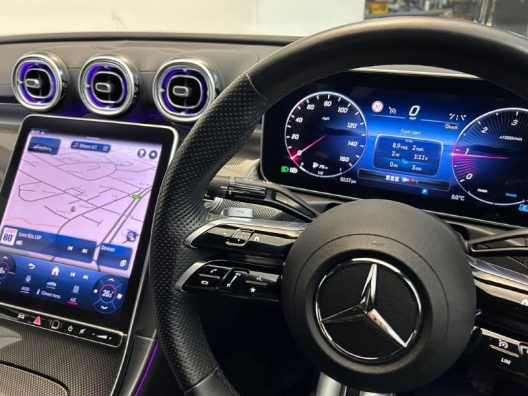 Stunning, high specification Mercedes C-Class with Satellite navigation, 360 degree parking cameras, Heated front seats, Front memory seats, 19" Alloy wheels, Apple carplay, Bluetooth audio and much more. Cared for and maintained to the very highest standard with all Mercedes-benz main agent service history. This new shape C-Class has been independently inspected by the AA for your added peace of mind. We have uploaded a full Hd walkaround video to show the quality both inside and out of this C-Class Premi Peter Scott Cars is an Award Winning family run dealership with over 30 years experience in the sourcing and supply of high quality vehicles..11.9in High Resolution Multimedia Colour Display, 12.3in Digital Individually Configurable Instrument Display, 19in Alloy Wheels - AMG Multi-Spoke Design - Painted in Himalayas Grey with High Sheen-Finish, ABS - Anti-Lock Braking System, Active Bonnet - Pedestrian Safety Measure which Detects an Impact and Raises Bonnet, Active Brake ASSIST PLUS, Active Lane Keeping Assist, Active Parking Assist including PARKTRONIC, Adaptive Brake Assist with Hold Function and Brake Drying Function, Adaptive Brake Lamps, Agility Control - Sports Suspension - Lowered by 15mm, Air Vents - Black with Silver Chrome Elements, Ambient Lighting, AMG Bodystyling - Front and Rear Apron - Side Skirts, AMG Front Bumper with Sporty Air Intakes and Chrome Elements, AMG Rear Bumper with High Gloss Chrome Elements, AMG Skirts in Vehicle Colour, ATTENTION Assist, Automatic Child Seat Recognition Sensor, B Pillar Trim in Glossy Black, Beltline Trim in Chrome, Black Roof Liner, Blind Spot Assist, Brake Calipers with Mercedes-Benz Lettering, Central Locking with Interior Switch - Automatic Locking and Crash Sensor with Emergency Opening Function, Childproof Locks - Manually Operated for Rear Doors and Electrically Operated for Rear Power Windows, DAB Digital Radio Tuner, Dashboard - ARTICO Man-Made Leather, Dashcam, Door Trim Elements - High Gloss Black with Silver Chrome Surroundings and Switches, Dual-Stage Airbags - Driver and Front Passenger - Sidebags in Front Seats - Driver Kneebag - Pelvis Bag and Windowbags for Driver - Front Passenger and Rear Passengers, Dynamic Select with a Choice of Driving Modes - Comfort - ECO - Sport - Sport Plus - Individual, Electric Parking Brake, Electric Windows - 4 - With One-Touch Opening and Closing - including Obstruction Sensors, Electronic Key - Chrome Surround, ESP - Electronic Stability Programme, Extended MBUX Functions, Exterior Mirrors - Heated and Electrically Adjustable, Fingerprint Sensor, First Aid Kit and Warning Triangle, Floor Mats - Black with AMG Lettering, Front Door Sill Panels - Illuminated, Front Seats - Electrical Height and Backrest Adjustment and Four-Way Lumbar Adjustment, Full LED Tail Lights, Gearshift Paddle on Steering Wheel, Headlamps - LED Digital Lamps, Heat and Noise Insulating Acoustic Glass, Heat Insulating Dark Tinted Glass, Heated Front Seats, Interior Lighting Package, ISOFIX Child Seat Attachment Points with Top Tether in Rear, KEYLESS-GO, Luggage Net in Boot and Folding Box Under Luggage, MBUX Augmented Reality