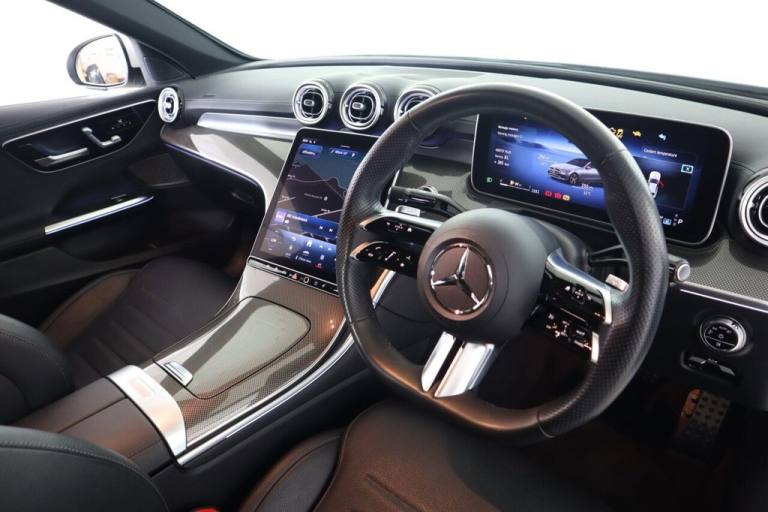 This 2023 Mercedes-Benz C Class C300e AMG Line (Premium) presents an exceptional ownership proposition with only one owner and a remarkably low mileage of 21105 miles. This Euro 6 compliant model boasts a sophisticated 2.0L petrol plug-in hybrid engine, offering an efficient and dynamic driving experience. The AMG Line trim enhances its sporty appeal, while notable features include advanced LED Digital Lamps for superior visibility, KEYLESS GO for effortless access, and Blind Spot Assist to aid your awareness on the road. Further enhancing convenience and safety, this C Class is equipped with a Parking Package featuring a 360-degree camera, making manoeuvring in tight spaces simple. Inside, you will appreciate the THERMATIC automatic climate control, allowing for personalised comfort with two distinct zones. These carefully selected features, combined with its low mileage and single owner history, clearly set this Mercedes-Benz C Class apart from other vehicles of its kind, promising a premium and well maintained ownership experience..11.9in High Resolution Multimedia Colour Display, 18in Alloy Wheels - AMG 5-Spoke Design - Aerodynamically Optimised - Painted in Tantalite Grey with High-Sheen Finish, ABS - Anti-Lock Braking System, AMG Front Bumper with Sporty Air Intakes and Chrome Elements, AMG Rear Bumper with High Gloss Chrome Elements, AMG Skirts in Vehicle Colour, ATTENTION Assist, Acoustic Ambient Protection, Active Bonnet - Pedestrian Safety Measure which Detects an Impact and Raises Bonnet, Active Lane Keeping Assist, Adaptive Brake Assist with Hold Function and Brake Drying Function, Adaptive Brake Lamps, Air Vents - Black with Silver Chrome Elements, Ambient Lighting, Automatic Child Seat Recognition Sensor, B Pillar Trim in Glossy Black, Beltline Trim in Chrome, Black Roof Liner, Blind Spot Assist, Brake Calipers with Mercedes-Benz Lettering, Central Locking with Interior Switch - Automatic Locking and Crash Sensor with Emergency Opening Function, Charging Cable - Mode 3 Cable for Wallbox and Public Charging Stations - 5m - Straight, Charging Socket, Charging System - AC Charging System Rated at 11kW, Childproof Locks - Manually Operated for Rear Doors and Electrically Operated for Rear Power Windows, DAB Digital Radio Tuner, Dashboard - ARTICO Man-Made Leather, Door Trim Elements - High Gloss Black with Silver Chrome Surroundings and Switches, Dual-Stage Airbags - Driver and Front Passenger - Sidebags in Front Seats - Driver Kneebag - Pelvis Bag and Windowbags for Driver - Front Passenger and Rear Passengers, Dynamic Select with a Choice of Driving Modes - Comfort - ECO - Sport - Sport Plus - Individual, ESP - Electronic Stability Programme, Electric Parking Brake, Electronic Key - Chrome Surround, Extended MBUX Functions, Exterior Mirrors - Heated and Electrically Adjustable, Fingerprint Sensor, First Aid Kit and Warning Triangle, Full LED Tail Lights, Gearshift Paddle on Steering Wheel, Headlamps - LED Digital Lamps, Heated Front Seats, ISOFIX Child Seat Attachment Points with Top Tether in Rear, Interior Lighting Package, Luggage Net in Boot and Folding Box Under Luggage, MBUX Augmented Reality for Navigation, MBUX Navigation Premium, MBUX Voice Control Activated by Keywords - Hey Mercedes, Memory Package, Mercedes Me Connect - Vehicle Set-Up and Vehicle Monitoring, Mirror Package, Outside Temperature Display, Overhead Control Unit in Black High Gloss, Parking Package with 360-Degree Camera, Powerdomes in Bonnet, Pre-Entry Climate Control, Pre-Installation for Digital Ke
