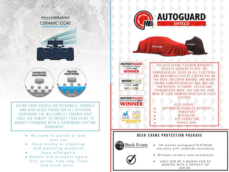 Every car is valeted and prepared to our own high standards and every vehicle is HPI checked. All of our customers receive a HPI report free of charge and a Free Parts + Labour warranty Included in the screen price on their purchase, which can be upgraded or extended to 12, 24 or 36 months if you wish just ask a member of our sales team.
