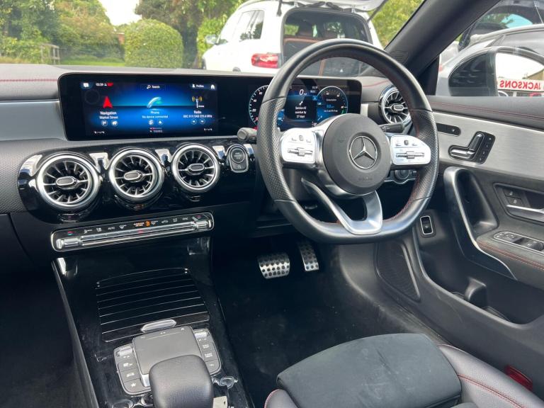 This 2023 Mercedes-Benz CLA220d AMG Line Night Edition is a superb example, having had only one owner from new and boasting a clear vehicle history check. Powered by an efficient 2.0L Euro 6 diesel engine, this automatic transmission model offers impressive performance, reaching 0-62mph in just 7.1 seconds. The AMG Line Night Edition trim enhances its sporty appeal, while the Premium Plus package adds a wealth of desirable features. Inside, you'll find THERMOTRONIC luxury automatic climate control for personalised comfort, dual Bluetooth interfaces for seamless connectivity, and smartphone integration with Apple CarPlay and Android Auto. Driving is further enhanced by MULTIBEAM LED headlamps with adaptive highbeam assist and automatic headlamp activation, ensuring excellent visibility in all conditions.The highlights of this Mercedes-Benz CLA demonstrate its superior quality and driver focused design. The rapid acceleration of 7.1 seconds from 0-62mph indicates a responsive and engaging driving experience, setting it apart from many similar vehicles. The inclusion of advanced features like the THERMOTRONIC climate control and MULTIBEAM LED headlamps provides a level of comfort and safety that elevates it above the ordinary, making every journey a pleasure.