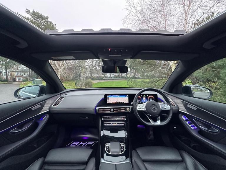 This 2023 Mercedes Benz EQC 400 AMG Line (Premium) boasts a full service history and a clear vehicle history check, offering you complete peace of mind. As an electric vehicle with four wheel drive, it combines impressive performance with advanced technology. The AMG Line trim enhances its sporty appeal, while the 88 kWh battery provides a maximum range of 254 miles when new. Charging is convenient, with a full charge at home taking approximately 12 hours and 13 minutes using a 7kW charger, and a rapid charge to 80% achievable in just 45 minutes at a public charging station. This EQC comes with a 12 month warranty and a 12 month MOT provided on purchase.Experience the thrill of rapid acceleration, with the EQC 400 AMG Line reaching 0-62mph in a swift 5.1 seconds, demonstrating its superior performance compared to similar vehicles. Notable features include Blind Spot Assist for enhanced safety, the KEYLESS-GO Comfort Package for effortless entry, and Wireless Smartphone Charging to keep you connected. Stay comfortable with THERMATIC Climate Control and navigate tight spaces with ease thanks to the Parking Package, which includes Parking Assist PARKTRONIC and a rear camera. Furthermore, you'll appreciate the generous boot space, making it a practical choice for everyday life and longer journeys.