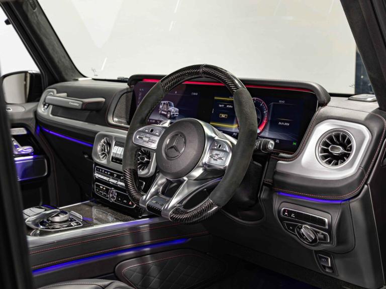 Finished in Night Black Magno, featuring a Black AMG Exclusive Nappa leather interior. This Mercedes-Benz G63 AMG Magno Edition is offered in immaculate condition, having covered only 7,900 miles from new. The car comes complete with full Mercedes-Benz main dealer service history and the remainder of the manufacturer warranty until June 2026.We now accept CryptocurrencySTANDARD FEATURESSUPERIOR Line Interior to include:Sliding SunroofBurmester 3D Surround Sound SystemMICROCUT Microfibre roof liner in Black Air IonizerDashboard in Nappa leather---G MANUFAKTUR package to include:Active Multicontour Seat Package PlusENERGIZING comfort controlAMG Exclusive Nappa leather---22” AMG Forged cross poke design, painted matt Black with a high-sheen rim flangeAMG Night Package 1 & 2AMG Night Package MagnoG Manufaktur bumpers and wheel arch flaring in Night Black MagnoG Manufaktur spare wheel ring in Night Black MagnoUnderguard in Night Black AMG Carbon fibre trim4MATIC Permanent four-wheel driveAMG Dynamic SelectAMG Ride ControlAMG Performance exhaust systemAMG -specific radiator grilleMULTIBEAM LED headlampsLED taillightsAmbient LightingHeated and ventilated electrically adjustable front seats including memoryHeated rear seatsKeyless-goTHERMOTRONIC automatic climate controlHeated AMG Performance steering wheel in carbon fibre/ DINAMICAElectrically adjustable steering columnDriving assistance packageParking PackageMagno paintworkSide running boardsTowbar