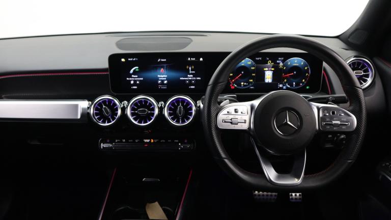 .This 2023 Mercedes Benz GLB200 AMG Line (Executive) boasts exceptionally low mileage for its year, having covered just 19,471 miles. This Euro 6 compliant 1.3 litre petrol model offers seating for seven, making it a versatile choice for families or those needing extra passenger capacity. The AMG Line trim enhances its sporty appeal, and you'll appreciate the comfort of heated front seats, perfect for those colder mornings. The GLB200 AMG Line is designed for practicality and performance. Its acceleration from 0 to 62mph in just 9.1 seconds demonstrates its responsive nature. Furthermore, the generous boot space ensures you have ample room for luggage or shopping, a key advantage over many vehicles in its class. This combination of efficiency, space, and engaging driving dynamics makes the GLB a compelling option..10.25'' Digital instrument cluster display screen, 10.25'' Digital media screen display, Active lane keeping assist, Attention assist - Monitors steering behaviour and long journey fatigue, Brake pad wear indicator warning light, Car wash mode, Cruise control with limiter, DYNAMIC SELECT with a choice of driving modes (ECO, Comfort, Sport and Individual), ECO start/stop function, Fluid level warning indicator for fuel, oil, coolant and washer fluid, Hard disk navigation, Hey Mercedes Voice activation, Lamp failure indicator, Mercedes me connect including emergency call system, accident recovery, breakdown and maintenance management, Mercedes me remote services, Outside temperature gauge, Owners manual and service booklet in English, Parameter steering system, Pre-installation of private car share, Preinstallation for parking damage notification, Radio aerial integrated into front and rear windshields, Service indicator (ASSYST), Speed limit assist, Trip computer in multifunction display with current consumption indicator, Comfort suspension, Rear axle multi-link, DAB digital radio tuner, MBUX multimedia system with DAB digital radio and touchpad including satellite navigation, Mercedes Benz sound system (100 W) with 6 speakers, Pre installation for Mercedes Benz Link, USB (type C) port in front stowage compartment, USB (type C) ports (2) in stowage compartment, Adaptive brake lights, Aerial for GPS, AMG bodystyling door panels black grained with chrome plated inserts, AMG bodystyling front apron with chrome splitter, AMG bodystyling rear apron with diffuser optics and chrome trim element, AMG specific front and rear bumper including underride