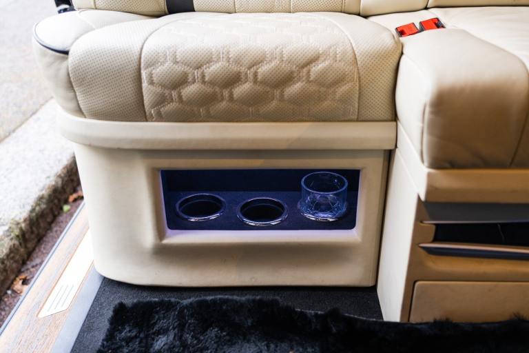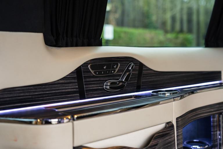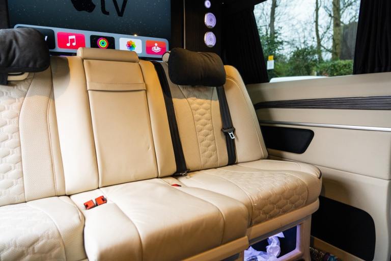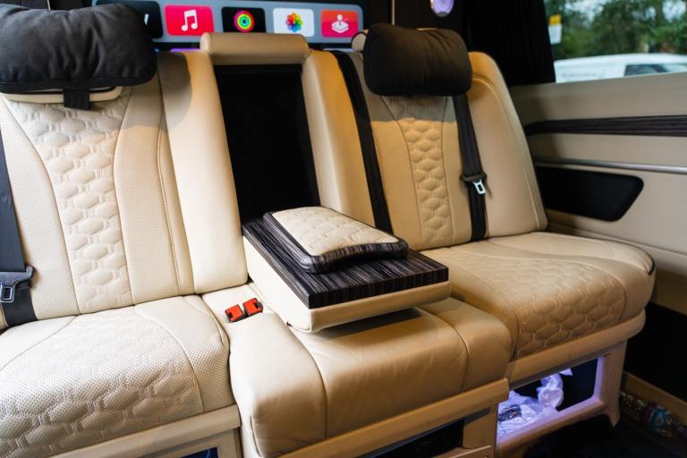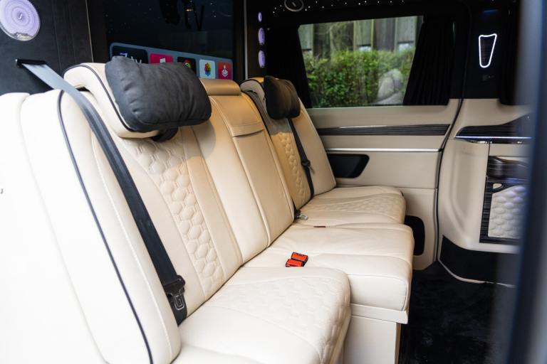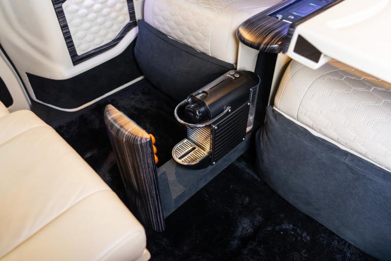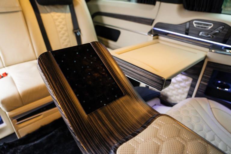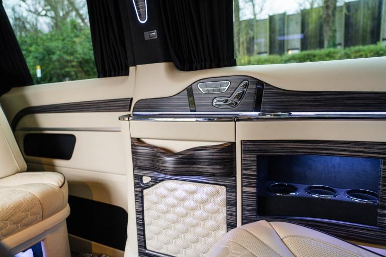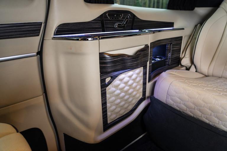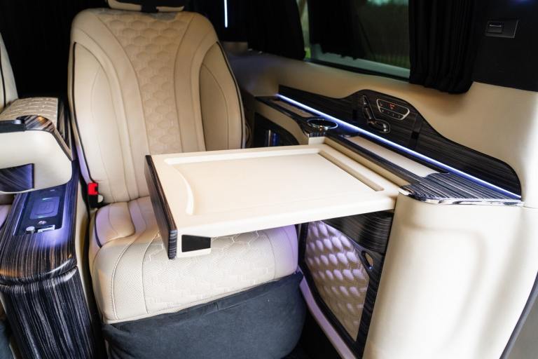 .Clive Sutton has been at the forefront of luxury VIP conversions for Mercedes-Benz-based vans for over 25 years. The Mercedes-Benz VIP Class by Sutton represents the pinnacle of chauffeur-driven luxury, combining exceptional practicality, space, and comfort in a fully customized people carrier. Each VIP Class conversion is tailored to individual requirements, featuring handcrafted interiors, bespoke seating configurations, and cutting-edge entertainment options. Whether configured for corporate use, personal luxury travel, or executive transport, this VIP-Class model delivers an unparalleled passenger experience. The exquisite interior is finished in premium materials such as fine leather, Alcantara, and hand-polished wood veneers. Passengers enjoy electrically adjustable first-class seating with heating, cooling, and massage functions, a state-of-the-art entertainment system with twin 4K screens, Apple TV, and PlayStation, plus a fully integrated soundproofing system ensuring a tranquil journey. Additional enhancements include a built-in fridge, humidors, ambient lighting, and a drivers partition for complete privacy. The 4G connectivity system provides seamless communication and entertainment while on the move. Externally, the VIP Class features a subtle yet commanding presence, finished in Obsidian Black. The design complements the luxurious cabin, making it an ideal choice for business executives, high-profile individuals, and VIP transport services. This example is physical and available from Clive Sutton..VIP Guest Seating: 2x Luxury Mercedes-Benz ML-Class Seats (electrically adjustable), Heated and ventilated seats, Electrically reclining and extending footrest, S-Class seat controls, Electrically driving drawers, Integrated umbrella holder, Humidor cigar box, Twin chrome cup holders, Nespresso coffee machine with storage, RRS remote iPad system, Apple TV, Integrated PlayStation 4, Harman Kardon Cinema Sound System, USB and HDMI connectivity, 4G Internet Modem, Switch Mode, 32 Electrically driving LED HQ screen, Rolls-Royce Starlight headliner, High-quality fur carpet, Exclusive chrome features, Electrically folding VIP tables, Luxury middle console with storage, Leather-trimmed cockpit, Steering wheel with mahogany wood and leather, High-end ambiance lighting, Mahogany wood paneling, Black-out curtains, Two-tone horn, Integrated valet key, Digital radio, Traffic Sign Recognition, Park Assist, Bentley Signature Audio, Blind Spot Assist,