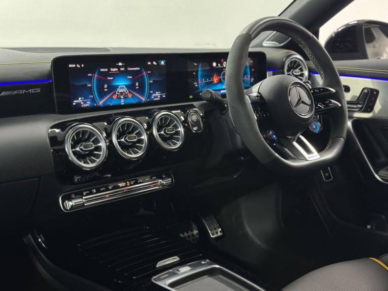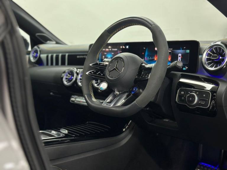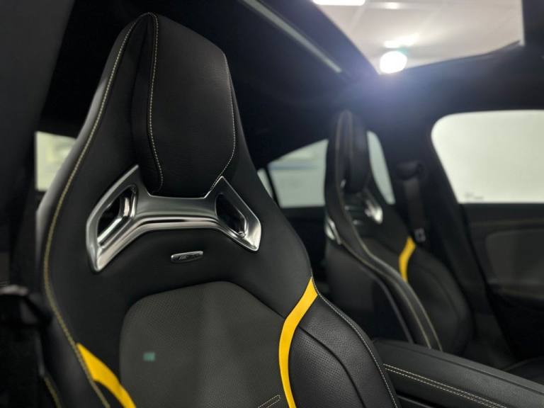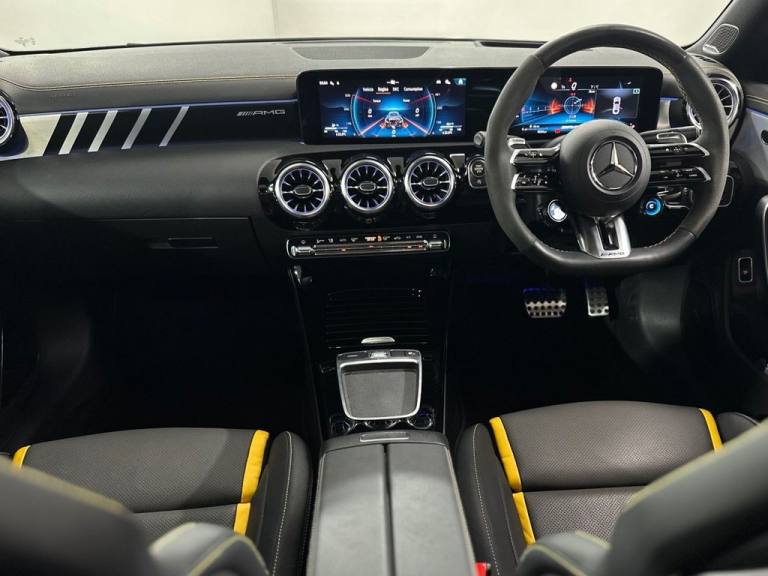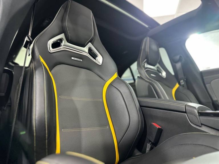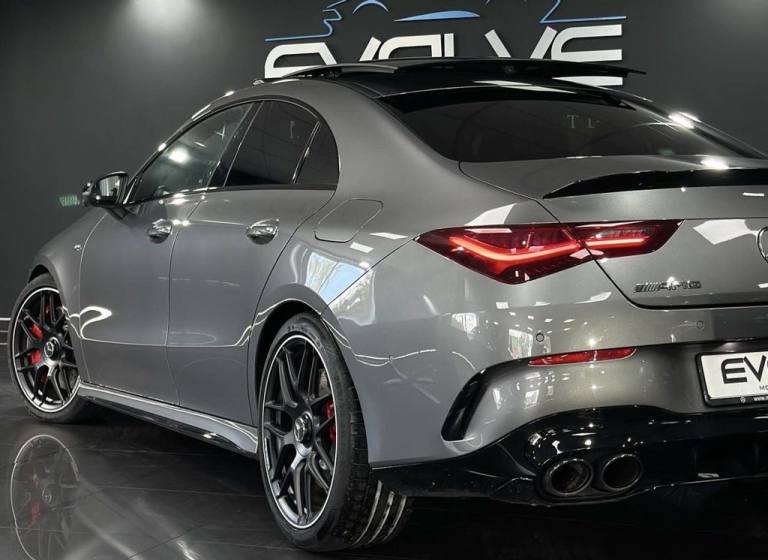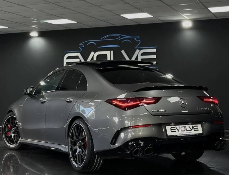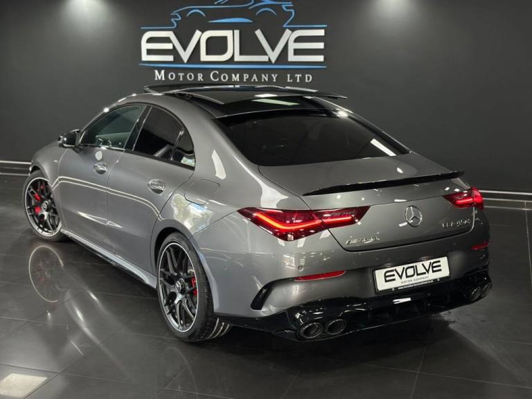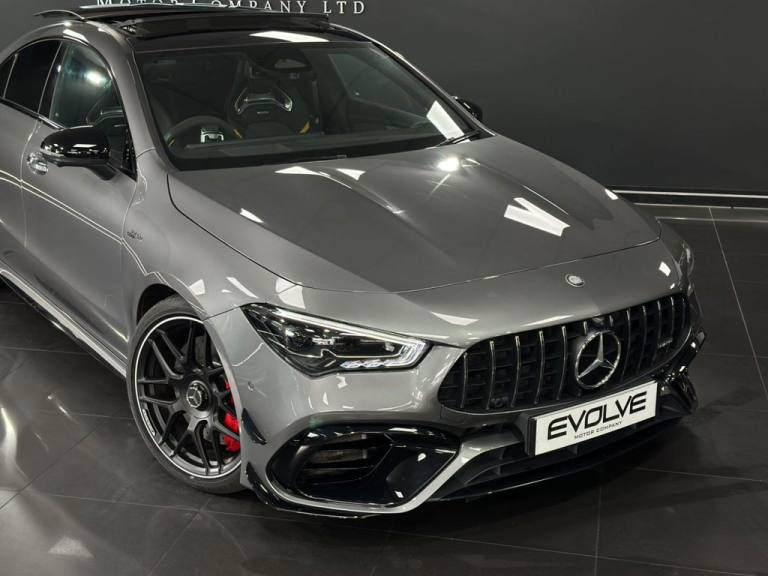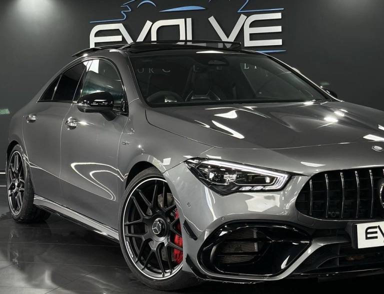 Mercedes CLA45S AMG 4MATIC+ Finished In Mountain Grey With 7,500 Miles, Optional Specification Includes: Metallic paint£595 Aluminium AMG Design black/silver, Mountain Grey metallic, Panoramic Sliding Sunroof, Burmester Sound System, Mercedes Ambient Lighting, Reverse Camera, Front & Rear Parking Sensors, Automatic LED Headlights, Mercedes Drive Select, 18" Gloss Black AMG Alloys, Red AMG Callipers, Cruise Control With Speed Limiter, Multifunctional AMG Steering Wheel,.Two-Tone Leather - Titanium Grey Pearl - Black with Yellow Stitching, Mountain Grey, 19in Alloy Wheels - AMG Forged Cross-Spoke - Painted Matt Black with High-Sheen Rim Flange, 3-Stage Electronic Stability Programme - ESP, ABS - Anti-Lock Braking System with BAS - Brake Assist, AMG Aerodynamics Package, AMG Bodystyling, AMG CLA 45 S Bodystyling, AMG Centre Console is Finished with Trim in Silver Chrome, AMG Drivers Package, AMG Dynamic Select with a Choice of Driving Modes - Slippery-Comfort-Sport-Sport Plus-Individual-Race, AMG Emblem on the Front Replacing "Mercedes-Benz" Laurel Wreath Badge, AMG Fuel Filler Cap, AMG High-Performance Braking System with Red Painted Brake Calipers, AMG Leather Package, AMG Menu with Sporty Additional Information, AMG Night Package, AMG Performance 4MATIC Plus with Torque Control, AMG Specific Radiator Grille with Vertical Bars in High-Gloss Chrome and AMG Logo, AMG Speed-Sensitive Steering with Two Sets of Steering Characteristics, AMG Sport Pedals in Brushed Stainless Steel with Rubber Studs, AMG Steering Wheel Buttons, AMG Suspension, AMG Track Pace - Records Lap Times on the Racetrack, ATTENTION Assist, Active Bonnet - Pedestrian Safety Measure which Detects an Impact and Raises Bonnet by 65mm, Active Brake Assist, Active Lane Keeping Assist, Adaptive Brake Lights, Air Conditioning - Air Vents with Surround in Silver Chrome, Air Conditioning - THERMOTRONIC Luxury Automatic Climate Control - Two-Zone with Display, Airbag - Kneebag for Driver, Airbags - Dual-Stage - Driver and Front Passenger, Airbags - Head and Sidebags - Driver and Front Passenger, Airbags - Windowbags for Driver and Front Passenger, Alarm System with Immobiliser and Interior Protection - Thatcham Category 1, Automatic Child Seat Recognition Sensor - Pressure Sensor, Beltline and Windowline in High-Gloss Black, Blind Spot Assist, Bluetooth Connection, Brake-Pad Wear Warning Indicator, Braking - Adaptive Brake Assist with HOLD Function and Hill Start Assist, Bumpers - Body Coloured, Burmester Surround Sound System, Car Wash Mode, Centre Armrest - Front with Stowage, Childproof Locks - Manually Operated for Rear Doors and Electrically Operated for Rear Power Windows, Crash-Responsive Emergency Lighting, Cruise Control with Limiter, DAB Digital Radio Tuner, Direct-Steer System, Door Handles - Body Coloured, Door Mirrors - Electrically Adjustable and Heated with Integrated LED Indicators, Door Sills - Illuminated Front Door Sills with Changeable