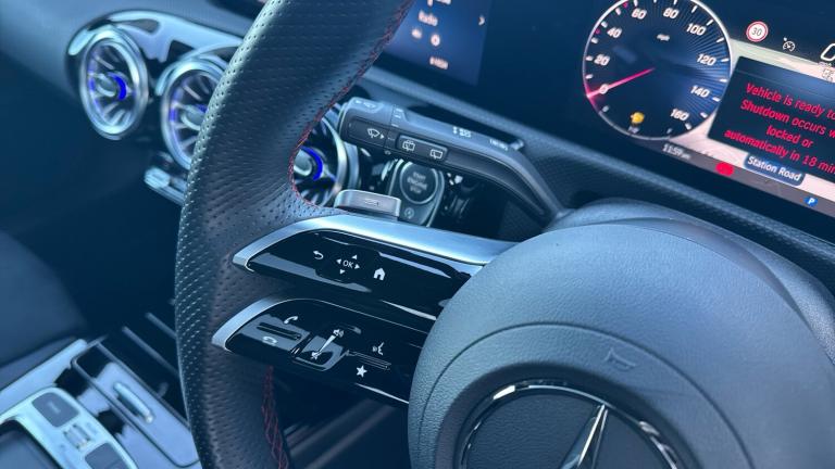 Get ready because this Mercedes Benz A Class A180h AMG Line Premium Plus is one of those rare hatchbacks that immediately makes you grin. A 2024 car with just two owners and serviced in December 2025, it blends sleek style with seriously clever mild hybrid efficiency giving you smooth power delivery and impressive real world economy. Finished in deep Cosmos Black Metallic and sitting on stunning 19 inch AMG alloy wheels it looks every bit the compact executive star.Slide inside and the excitement really begins. The panoramic sliding sunroof floods the cabin with light while the 64 colour ambient lighting lets you set the mood perfectly. The MBUX augmented reality satellite navigation is a revelation projecting live guidance into your field of view so every turn is crystal clear. Add the crisp head up display and you feel like you are in a miniature luxury command centre.Comfort is outstanding. Heated seats with memory settings keep you perfectly positioned every journey and automatic climate control maintains the ideal atmosphere. Entertainment and connectivity are effortless with Apple CarPlay and wireless mobile phone charging keeping your digital world close at hand.When it comes to safety and stress free driving the A Class excels. Cruise control takes the strain on long trips while Blind Spot Assist and electrically folding mirrors boost confidence in tight spaces. Active Parking Assist and the full surround three hundred sixty degree camera make parking almost enjoyable. MULTIBEAM LED headlamps provide outstanding visibility and hands free access adds everyday convenience.And buying from Vertu Mercedes Benz Beaconsfield brings real peace of mind. You benefit from expert manufacturer trained technicians and comprehensive warranty protection so you can enjoy this remarkable hatchback knowing it is supported by true specialists.A practical high tech economical comfortable and seriously safe premium hatch. This A Class is ready to make every journey feel special..Air Conditioning, Climate Control, Metallic Paint, Cruise Control, Satellite Navigation, Alloy Wheels, Heated Seats, DAB Radio, Bluetooth, Panoramic Roof, Parking Sensors, Stop Start, Low Mileage, USB, Park Assist, Ex Business, Manufacturer Approved, Sun Roof, Electric Seats, Memory Seats, Keyless Entry-Push Button Start, Apple-Android Play, Rear Camera, Auto Lights, Electric Folding Mirrors, Lane Departure, Lane Keeping Assist, Pre Crash Prevention& Rain Sensors, AMG floor mats, Privacy glass, 4 Electric Front and Rear windows, Heated glass rear windscreen + timer control, Rain sensing windscreen wipers with two sensitivity settings, Rear windscreen wiper, ABS with Brake Assist, ESP with ASR, Electronic parking brake, ESP curve dynamic assist, Adaptive brake assist with hold function and hill start assist, Lowered comfort suspension, Hard-disk navigation, Hey Mercedes Voice activation, Dual bluetooth interfaces, Speed sensitive power steering, Direct steering
