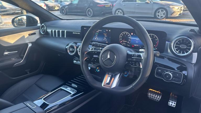 Discover the ultimate blend of performance, style, and technology with this 2024 Mercedes-Benz A Class A35h MHEV AMG Touring Edition Hatchback. Powered by a 2.0-litre petrol hybrid engine producing 320 PS and enhanced by Mild Hybrid efficiency, this 4MATIC marvel delivers thrilling acceleration while optimising fuel economy. Its Spectral Blue Metallic finish and 19 Inch AMG alloy wheels make a bold statement on the road, while the AMG Night and Aerodynamics packages emphasise its aggressive, athletic stance.Step inside to find a cabin that balances luxury and innovation. Black heated leather seats provide comfort on every journey, complemented by AMG Ride Control Suspension for a refined, controlled drive. Cutting-edge technology surrounds you with MBUX Satellite Navigation, Apple CarPlay, wireless mobile phone charging, a reversing camera, LED headlamps, and 64 colour ambient lighting to personalise your interior. Every journey is safer and more enjoyable thanks to these intelligent features.This one-owner car has been carefully maintained, with its last service in November 2025, ensuring it is in exceptional condition and ready to deliver an uncompromising driving experience.Purchasing through Vertu Mercedes-Benz Beaconsfield adds complete reassurance. Enjoy full warranty coverage and the expertise of manufacturer trained technicians who maintain your car to the highest standard. Our team delivers professional guidance, exceptional service, and the confidence of buying from a dealership committed to excellence.Stylish, technologically advanced, efficient, comfortable, and safe, the A35h AMG Touring Edition Hatchback is a perfect fusion of performance and practicality. Every drive excites, every journey indulges, and every feature enhances your lifestyle. Experience the thrill of Mercedes-Benz engineering with peace of mind, knowing you are supported by Vertu Mercedes-Benz Beaconsfield, where quality and care meet seamlessly..Air Conditioning, Climate Control, Metallic Paint, Cruise Control, Satellite Navigation, Alloy Wheels, Leather Seats, Heated Seats, DAB Radio, Bluetooth, Parking Sensors, Stop Start, Low Mileage, Full Service History, USB, Park Assist, Manufacturer Approved, Apple-Android Play, Rear Camera, Auto Lights, Electric Folding Mirrors, Lane Departure, Lane Keeping Assist, Pre Crash Prevention, Rain Sensors& 4x4, AMG floor mats, Privacy glass, 4 Electric Front and Rear windows, Heated glass rear windscreen + timer control, Rain sensing windscreen wipers with two sensitivity settings, Rear windscreen wiper, ABS with Brake Assist, ESP with ASR, Electronic parking brake, ESP curve dynamic assist, Active brake assist includes forward collision warning system with autonomous braking, Adaptive brake assist with hold function and hill start assist, Front brake calipers with AMG lettering, AMG suspension, Hard-disk navigation, Hey Mercedes Voice activation, Dual bluetooth interfaces