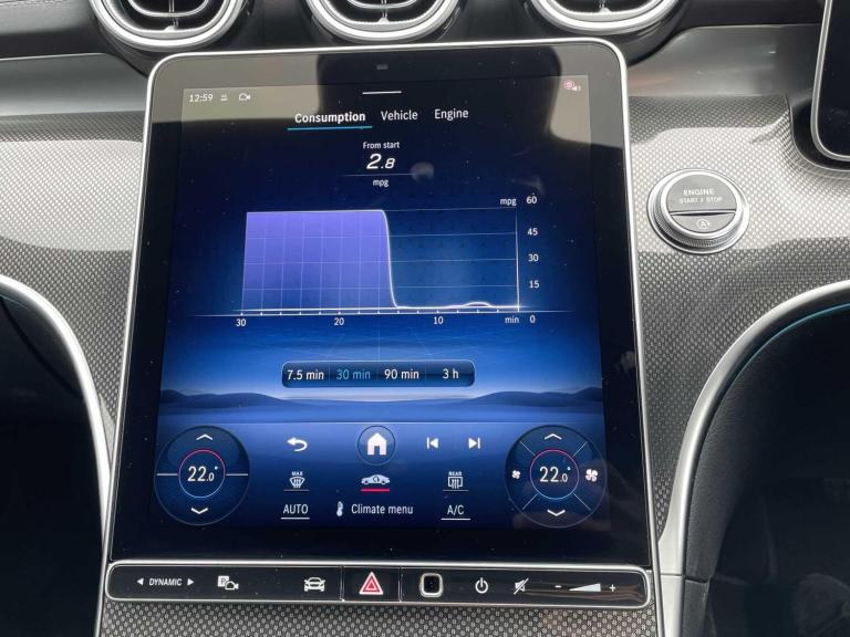 This 2024 Mercedes-Benz C Class C300h AMG Line (Premium) presents an exceptional ownership proposition, having covered a mere 2845 miles and boasting a full dealership service history. As a Mercedes-Benz manufacturer approved vehicle, it comes with the assurance of quality and care. This single owner example features the dynamic AMG Line trim and is powered by an efficient 2.0L petrol hybrid engine, meeting Euro 6 emissions standards.Experience exhilarating performance with this C Class, capable of accelerating from 0 to 62mph in just 6.0 seconds, a testament to its advanced hybrid technology. This impressive acceleration figure indicates a superior driving experience compared to many other vehicles in its class. The combination of its low mileage, comprehensive service record, and manufacturer approval makes this C300h AMG Line (Premium) a truly outstanding choice for discerning drivers.