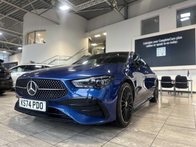This 2024 Mercedes-Benz CLA200h AMG Line (Premium Plus) is a Mercedes-Benz manufacturer approved vehicle with a full dealership service history, having had its last service on 27 January 2026 at 12,151 miles, and has had only one owner. This Euro 6 compliant model features a 1.3L petrol hybrid engine and comes equipped with the AMG Line trim. Notable features include a Memory Package for the seats, Bluetooth connectivity, a Parking Package with a 360-degree camera for effortless manoeuvring, and smartphone integration with both Apple CarPlay and Android Auto. The Headlamp Assist automatically activates the headlights, enhancing convenience and safety.The Premium Plus specification of this Mercedes-Benz CLA ensures a superior driving experience, highlighting its advanced technology and comfort. The inclusion of a 360-degree camera and parking assistance systems makes navigating tight spaces straightforward, setting it apart from vehicles without such comprehensive aids. Furthermore, the seamless smartphone integration keeps you connected and entertained on every journey. This combination of a low mileage, comprehensive service record, and desirable features makes this CLA a compelling choice for those seeking a premium and well maintained vehicle.
