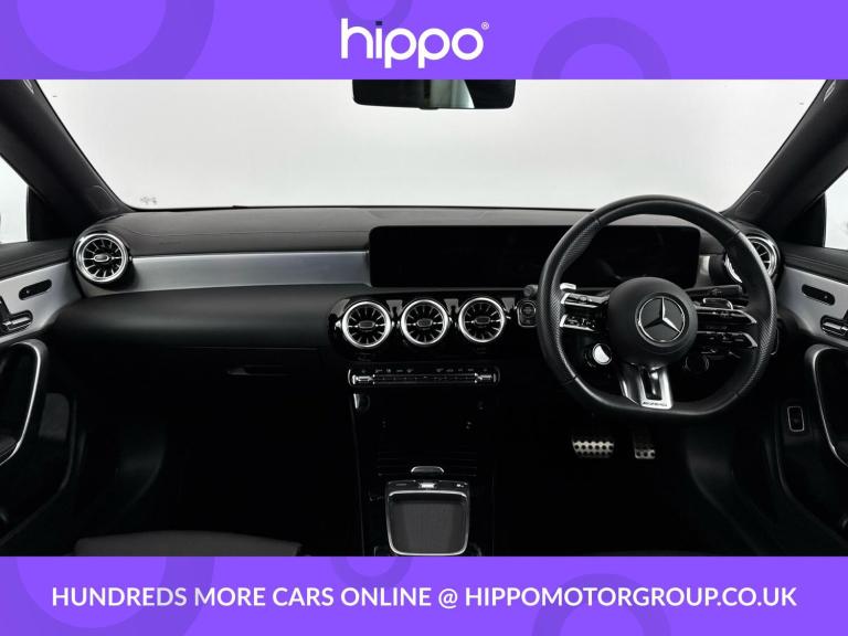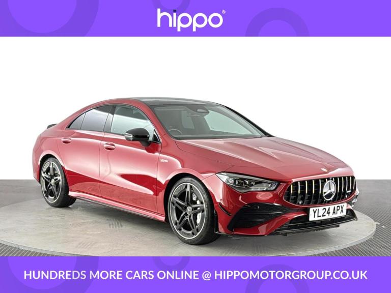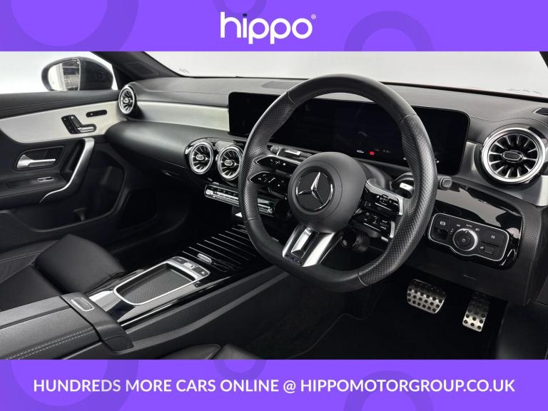 Presenting this Mercedes-Benz CLA 2.0 CLA35h MHEV AMG Premium Plus Coupe, a meticulously maintained petrol hybrid with only 8,128 miles on the clock. This high-performance 4-door Coupe, equipped with an 8G-DCT automatic transmission, combines impressive power (320 PS) with the efficiency benefits of mild-hybrid technology and the confidence of 4MATIC all-wheel drive, meeting Euro 6 emissions standards. Specification highlights include striking 19'' AMG alloy wheels featuring a 5-twin-spoke design in matt black with a high-sheen rim flange, lending a distinctive sporty appearance. The panoramic roof offers a bright and airy cabin, enhancing the Premium Plus experience. The car has had one service, most recently at 5,000 miles, reflecting a commitment to ongoing care and reliability. Hippo Approved is known for a wide selection of vehicles suited for various needs and budgets. Each car undergoes a rigorous 130-point quality and safety inspection at our state-of-the-art £3 million preparation centre, ensuring your peace of mind. Additionally, we offer tailored finance packages for personal and business use, making it easy to acquire your ideal car.