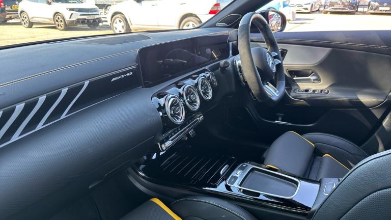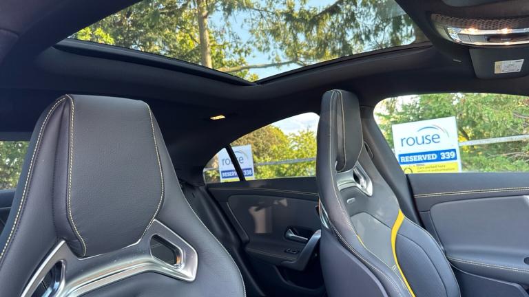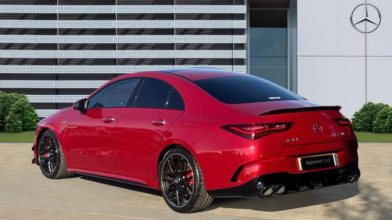 This 2024 Mercedes Benz CLA45 AMG S Plus Coupe is a firecracker of a four door coupe that blends supercar pace with everyday usability and jaw dropping design. Finished in striking MANUFAKTUR Patagonia red Metallic and sitting proudly on 19 Inch AMG alloy wheels this is a car that turns heads before it even starts.Under the sculpted bonnet sits a ferocious 421 ps AMG engine paired with AMG SPEEDSHIFT DCT 8G and the legendary 4MATIC all wheel drive system. The result is explosive acceleration yet remarkable composure in all conditions. AMG Ride Control Suspension and the AMG Aerodynamics package sharpen every corner delivering confidence inspiring handling without sacrificing refinement.Inside the cabin is a masterclass in performance luxury. Two tone AMG leather in titanium grey pearl and black with yellow detailing offers heated seats with memory while the Panoramic Sliding Sunroof floods the interior with light. The MBUX system with Augmented Reality Satellite Navigation and Head Up Display places vital information directly in your line of sight while the Burmester surround sound system delivers concert hall audio quality. Wireless Mobile Phone Charging and a 360 Camera ensure everyday convenience is effortless.Technology and safety are equally impressive. MULTIBEAM LED Headlamps provide outstanding visibility at night while advanced driver assistance systems quietly support you on every journey. Despite the performance on offer this CLA45 remains efficient for its class making it a thrilling yet sensible choice.This example has had just 2 owners and comes with a Full Mercedes Benz Service History with the last service completed in January 2026 giving complete peace of mind.Available now from Vertu Mercedes Benz Beaconsfield where every car is prepared by manufacturer trained technicians and supplied with comprehensive warranty options. Buy with confidence from a retailer committed to exceptional standards and outstanding customer care. This is performance motoring done properly..Air Conditioning, Climate Control, Metallic Paint, Cruise Control, Satellite Navigation, Alloy Wheels, Leather Seats, Heated Seats, DAB Radio, Bluetooth, Panoramic Roof, Parking Sensors, Stop Start, Low Mileage, Full Service History, USB, Park Assist, Manufacturer Approved, Sun Roof, Electric Seats, Memory Seats, Keyless Entry-Push Button Start, Apple-Android Play, Rear Camera, Auto Lights, Electric Folding Mirrors, Lane Departure, Lane Keeping Assist, Pre Crash Prevention, Rain Sensors& 4x4, Floor mats with stitched AMG lettering, Electric windows, Variable front intermittent wipers, Heated glass rear windscreen + timer control, Rain sensing windscreen wipers with two sensitivity settings, Privacy glass with dark tinting on rear side windows and rear window, Adaptive brake assist with hold function and hill start assist, Electric parking brake, Anti lock braking system (ABS) with brake assist, Electronic stability programme with acceleration skid control