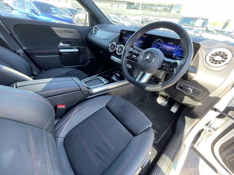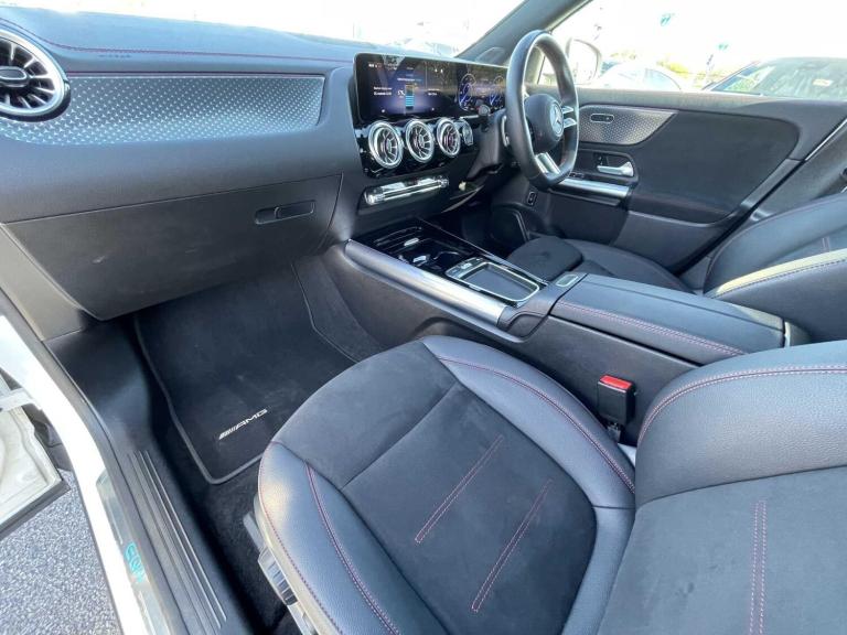 This 2024 Mercedes-Benz EQA 300 AMG Line (Executive) boasts an exceptionally low mileage of just 7082 miles, a testament to its single owner and full dealership service history, ensuring it remains Mercedes-Benz manufacturer approved. This electric, four wheel drive model features a 73 kWh battery offering a maximum range of 267 miles, with a full home charging time of 11 hours 6 minutes on a 7kW charger and a rapid 36 minute charge from empty to 80% at a public station. Inside, you'll find the comfort of heated front seats, THERMATIC climate control, and the immersive Mercedes-Benz sound system, all enhanced by seamless Smartphone Integration with Android Auto and Apple CarPlay.The AMG Line trim adds a sporty aesthetic, while the inclusion of Blind Spot Assist provides an extra layer of safety, setting this EQA apart from others. This vehicle represents a superb blend of advanced electric technology, luxurious comfort, and the peace of mind that comes with meticulous care and manufacturer approval, making it an excellent choice for those seeking a premium electric driving experience.