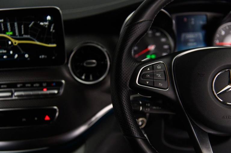 This Mercedes-Benz V-Class 2.0 V220d AMG Line XLWB presents a perfect blend of executive luxury, versatile space and refined design, finished in timeless Obsidian Black and enhanced by the striking AMG Line styling package. Its commanding road presence is elevated by 19in AMG 7-twin-spoke alloy wheels, a diamond-pattern grille with chrome pins and sculpted AMG front and rear aprons, complemented by anodised roof rails and privacy-tinted rear glass. Inside, the cabin delivers first-class comfort with Artico leather upper dashboard with contrast stitching, ambient lighting, heated front seats and premium THERMOTRONIC two-zone climate control extending into the rear. The XL wheelbase offers exceptional interior space with extended seat rails, electric sliding doors on both sides, additional cup holders and luxury stowage solutions, all finished with carbon-look trims and illuminated Mercedes-Benz door sills. Technology highlights include the intuitive 10.25-inch MBUX multimedia system, reversing camera with Active Parking Assist, FrontBass audio, cruise control with SPEEDTRONIC, and a suite of safety systems such as ATTENTION Assist, Active Brake Assist and Sidewind Assist. Practicality is maximised with the EASY-PACK powered split tailgate, towing package, multiple USB ports and a heated washer system. This V-Class offers an exceptional combination of sophistication, comfort and everyday usability—crafted for families, professionals and chauffeurs seeking premium space and Mercedes-Benz refinement in its most versatile form..Obsidian Black, 12V Socket in Boot-Load Compartment and Rear Passenger Compartment, 19in Alloy Wheels - AMG 7-Twin-Spoke Design, ABS - Anti-Lock Braking System, AMG Bodystyling - Front Apron - Rear Apron - Rear Spoiler, AMG Bodystyling - Side Skirts, ATTENTION Assist, Active Brake Assist, Active Parking Assist with Reversing Camera, Adaptive Brake Lights, Adaptive Brake System with HOLD Function and Brake Drying in the Wet, Additional Cup Holders in Armrests of Second Row Bench, Adjustable Head Restraints for Driver and Front Passenger, Agility Control - Comfort Suspension, Airbag - Driver, Airbag - Front Passenger, Airbags - Sidebag for Driver and Front Passenger - Combined Thorax-Pelvis Bag, Airbags - Windowbags for Driver and Front Passenger, Ambient Lighting - Three Different Colours, Anodised Roof Rails, Artico Leather Upper Dashboard with Contrast Stitching, Automated Headlamp Assist, Brake Calipers with Mercedes-Benz Lettering, Brake Wear Warning Display, Carpet Floor Covering in Passenger Compartment, Central Locking with Interior Switch - Automatic Locking, Childproof Locks - Rear Doors, Chrome Air Vents, Comfort Driver and Co-Driver Seats Including Armrests, Cruise Control with SPEEDTRONIC Variable Speed Limiter, Digital Radio, Direct-Steer Speed Sensitive Steering, Dynamic Select with a Choice of Driving Modes - Comfort-Sport-Individual, EASY-PACK Powered Tailgate, ESP - Electronic Stability Programme, Electric Air Heater System - 1.2kW Output, Electric Parking Brake, Electric Rear Ventilation Windows in the Passenger Compartment, Electric Sliding Doors - Both Sides, Electronic Key - Chrome Surround, Extended Seat Rail, Exterior Mirrors - Electrically Folding Mirrors and Auto Dimming Exterior Drivers Mirrors and Rear-View Mirror, First Aid Kit and Warning Triangle, Footwell Lighting and Illuminated Handle in the Rear Compartment with Reading Light, Front Electric Windows with One-Touch Opening and Closing including Obstruction Sensors, Headlamps - LED Intelligent Light System with Integral LED Daytime Running Lamps, Heated Front Seats, Heated Windscreen Washer System, Hill Start Assist, Illuminated Front Door Sills with Mercedes-Benz Lettering, Instrument Cluster with 5.5in Colour Display Trip Computer, Integrated Radio Aerial, Lockable Glove Compartment, Logo Projection, Lumbar Support for Driver and Front Passenger, Luxury Centre Console with Retractable Cover - 2 Cup Holders - 12v Socket and Multimedia Box, MBUX Multimedia System with 10.25-I