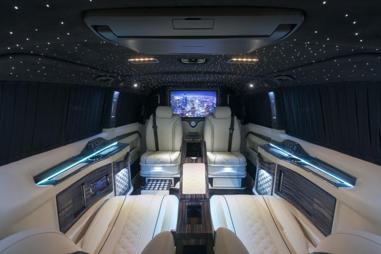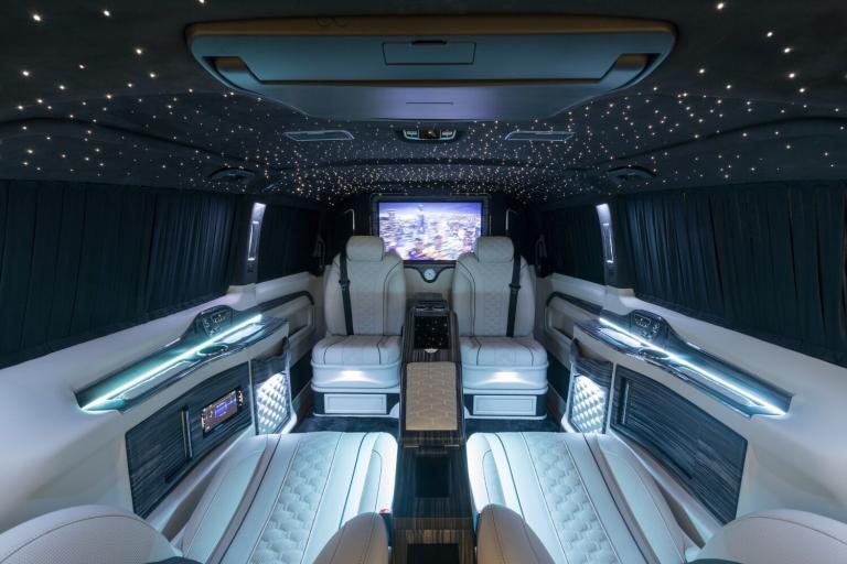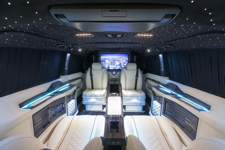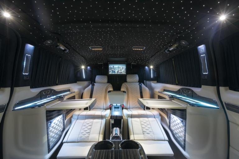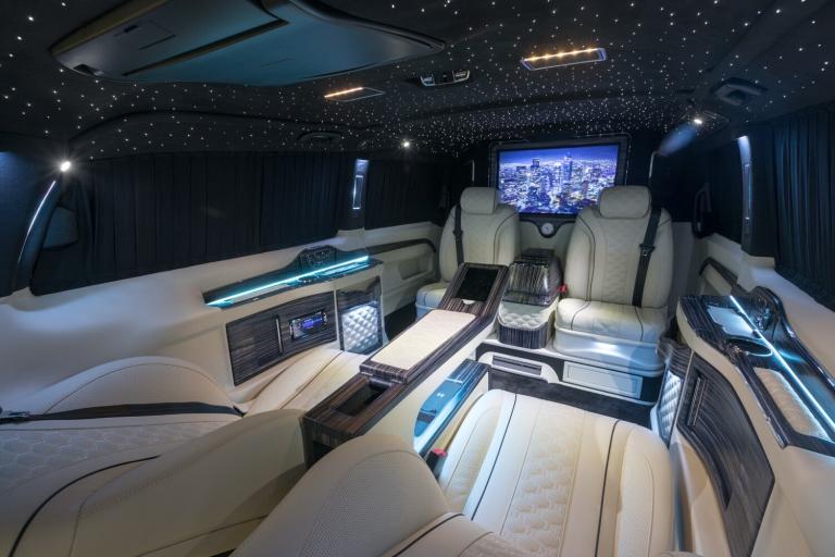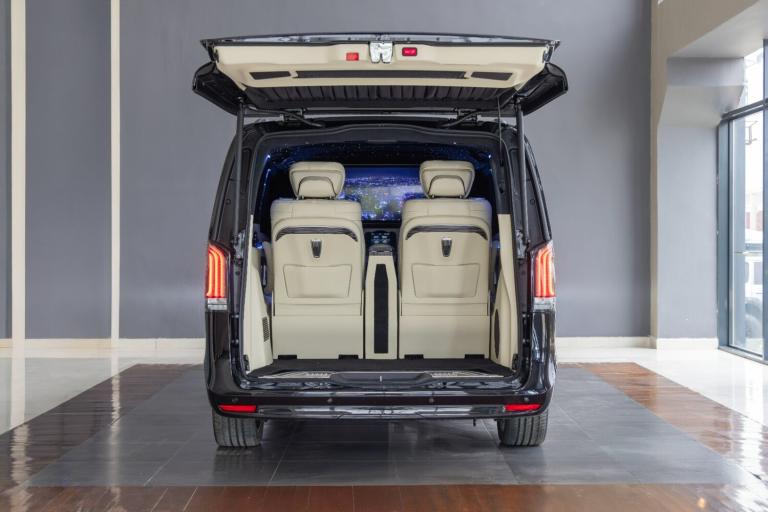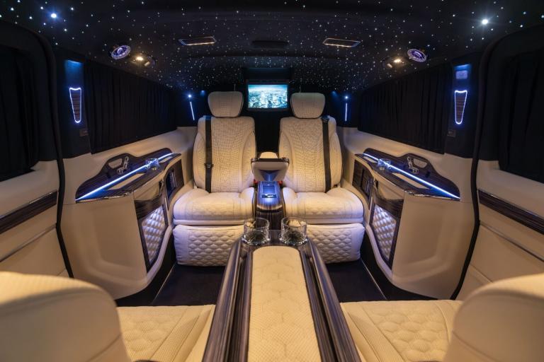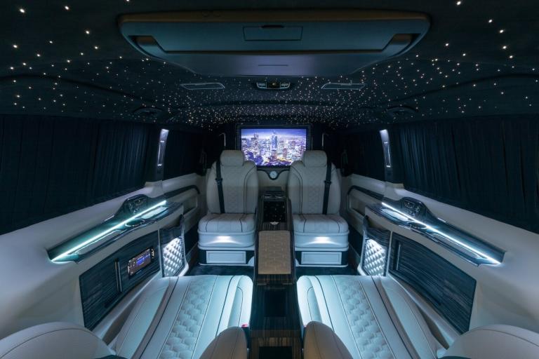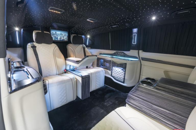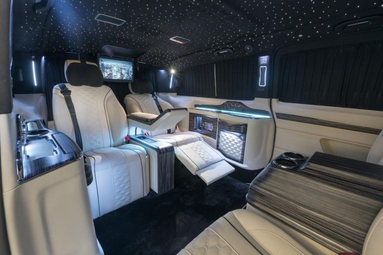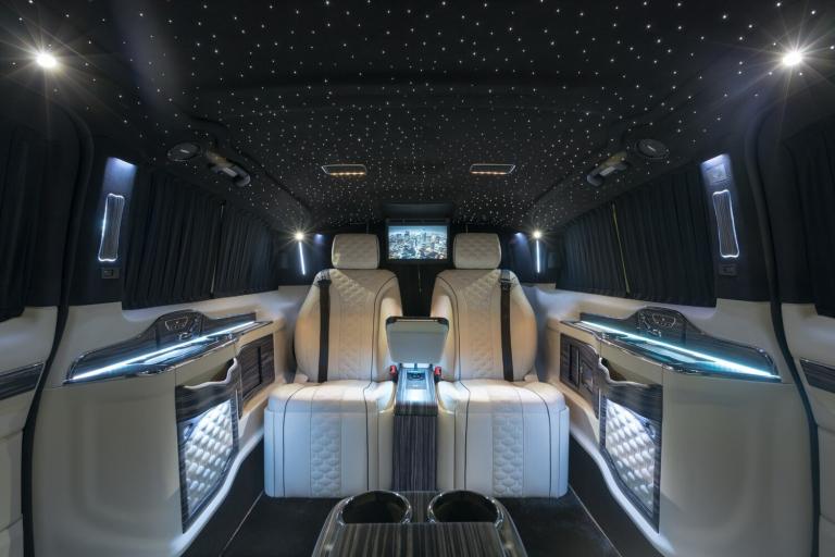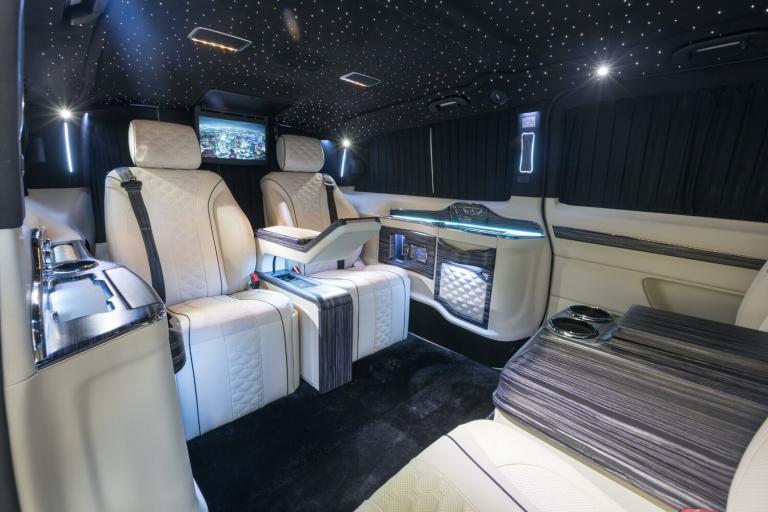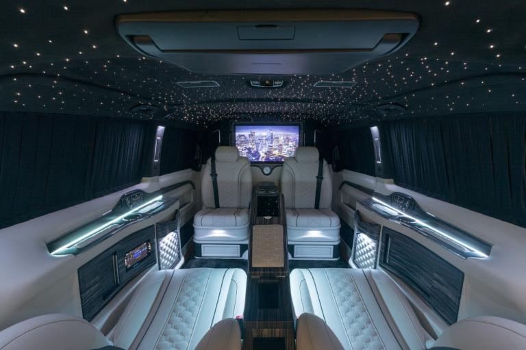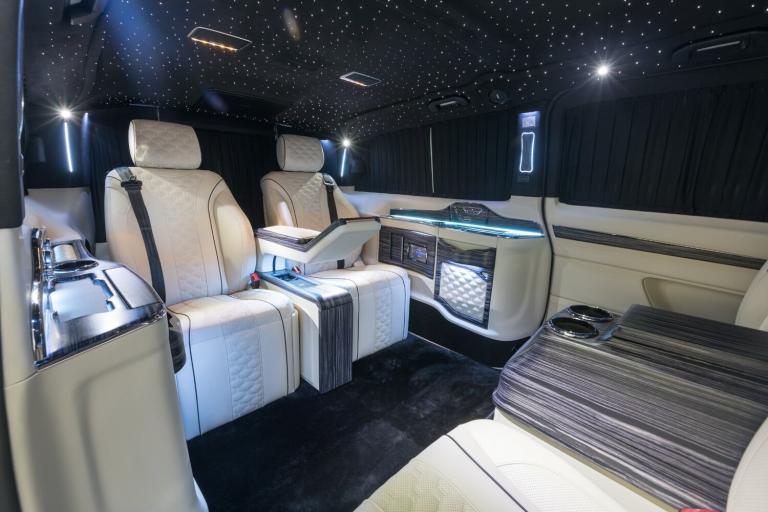 Clive Sutton have been at the forefront of luxury VIP conversions for Mercedes-Benz based vans for over 25 years. The Mercedes-Benz VIP Class by Sutton is the best of chauffeur-driven luxury offering unparalleled practicality, space and comfort.Our VIP Class conversions are bespoke people carriers specified to your own unique configuration. These conversions are customised using the finest materials to transform the interior and to compliment the required use of the vehicle. In addition to the exquisite materials, there is an extensive list of luxury options to choose from including electric heated and cooled seats with a 10-point massage function, advanced infotainment for all passengers, and a drivers partition for enhanced privacy. And this is just the tip of the iceberg. With rear passenger seating for 2, 3, 4, 5 or 6 persons the flexibility of the generous passenger compartment is enormous. A roof-mounted antenna provides 4G connectivity for the custodians who also get to choose from options such as an Apple TV and PlayStation 4. Then theres the comprehensive Insulation & sound-proofing package to make the car even quieter, noticeable in traffic and on the move. The exterior of the VIP Class is finished in the subtle Obsidian black which can either match or contrast with the spacious cabin, depending on your preference. We invite you to find out more by contacting us with your own configuration. We offer both build-to-order vehicles as well as some ready configured models such as our V Class Executive and VIP Class versions, with an array of options to colours and finishes. All vehicles commissioned have full 3-year warranty on both the vehicle and the conversions.. Ceiling Maybach LED Lighting with multi color function, Thermal and 2x acoustic insulation for external volume reduction, 2x Folding 15,4'' LED TV, Various cup holders chrome plated, 2x electrically folding tables, Elegant storage compartments, High quality curtains in the VIP area windows, Seats covered with leather, Ceiling covered with Alcantara, Left sidewall covered with Alcantara and leather, Right sidewall covered with Alcantara and leather, Doors covered with leather, Waeco CDF 26 refrigerator 21 L (+ 5 - 18 C), Left sidebar with decorative embellishments, Right sidebar with decorative embellishments, Ceiling construction incorporated, 8x Pillar covering, 2x Frames of electrical tables, Left sidewall paneling, Right sidewall paneling, Left sidebar paneling, Right sidebar
