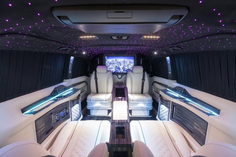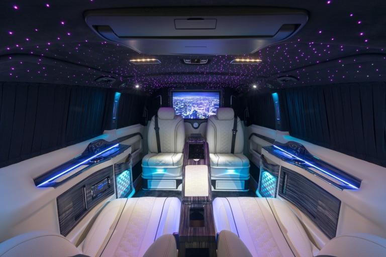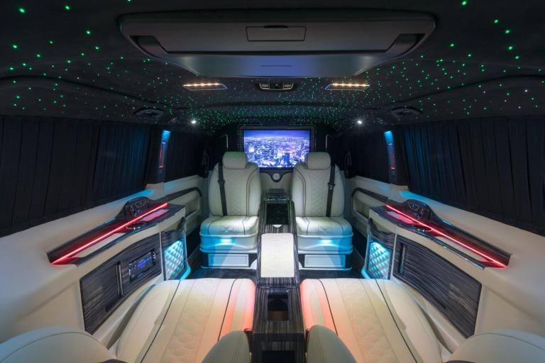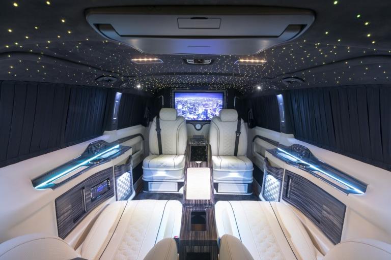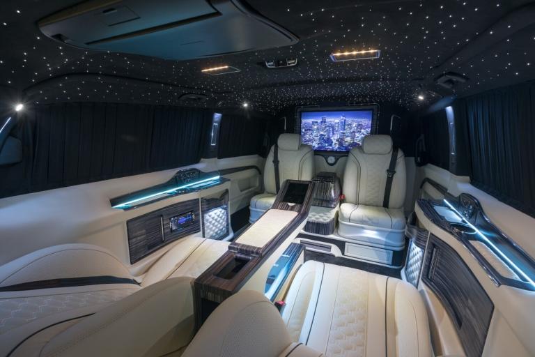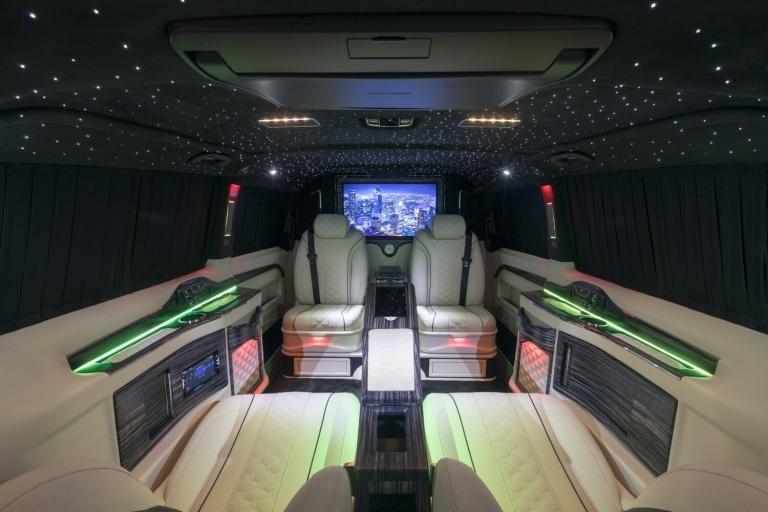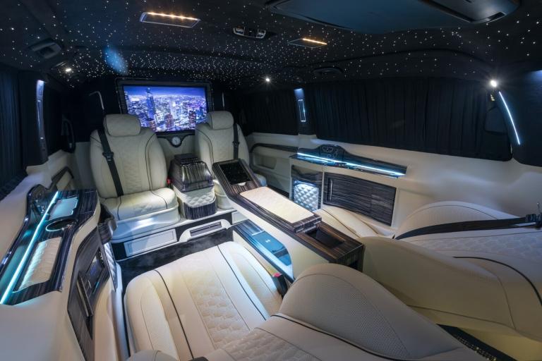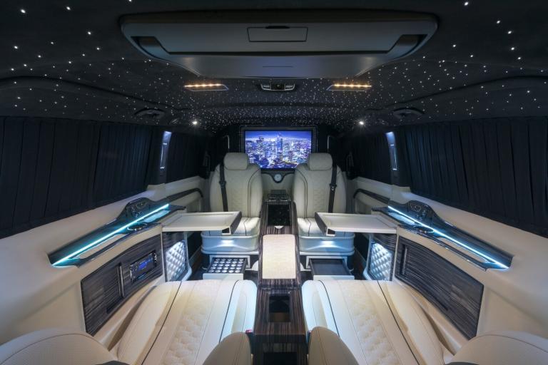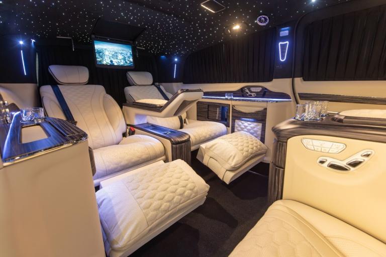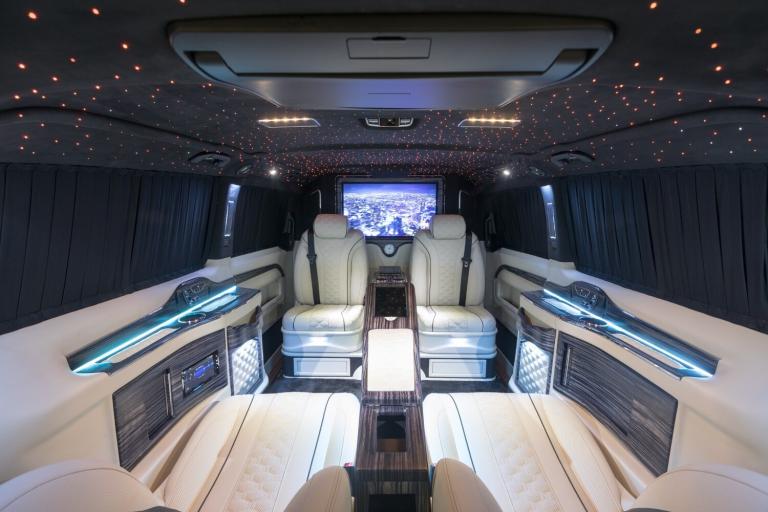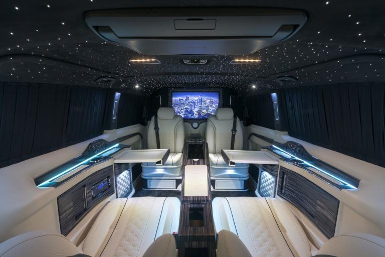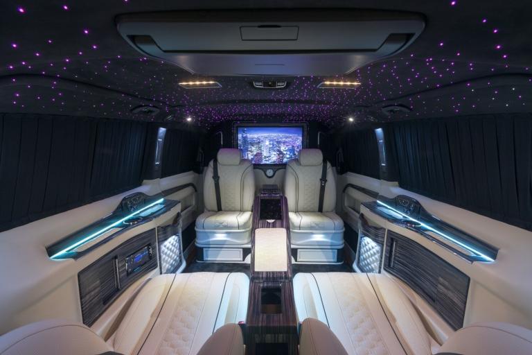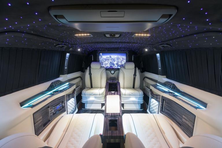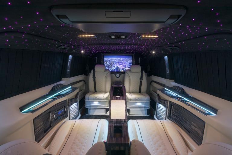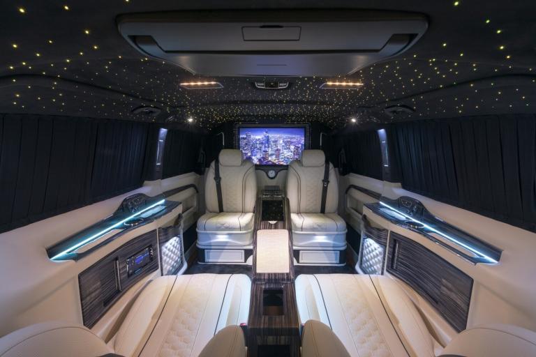 Clive Sutton have been at the forefront of luxury VIP conversions for Mercedes-Benz based vans for over 25 years. The Mercedes-Benz VIP Class by Sutton is the best of chauffeur-driven luxury offering unparalleled practicality, space and comfort.Our VIP Class conversions are bespoke people carriers specified to your own unique configuration. These conversions are customised using the finest materials to transform the interior and to compliment the required use of the vehicle. In addition to the exquisite materials, there is an extensive list of luxury options to choose from including electric heated and cooled seats with a 10-point massage function, advanced infotainment for all passengers, and a drivers partition for enhanced privacy. And this is just the tip of the iceberg. With rear passenger seating for 2, 3, 4, 5 or 6 persons the flexibility of the generous passenger compartment is enormous. A roof-mounted antenna provides 4G connectivity for the custodians who also get to choose from options such as an Apple TV and PlayStation 4. Then theres the comprehensive Insulation & sound-proofing package to make the car even quieter, noticeable in traffic and on the move. The exterior of the VIP Class is finished in the subtle Obsidian black which can either match or contrast with the spacious cabin, depending on your preference. We invite you to find out more by contacting us with your own configuration. We offer both build-to-order vehicles as well as some ready configured models such as our V Class Executive and VIP Class versions, with an array of options to colours and finishes. All vehicles commissioned have full 3-year warranty on both the vehicle and the conversions.. Ceiling Maybach LED Lighting with multi color function, Thermal and 2x acoustic insulation for external volume reduction, 2x Folding 15,4'' LED TV, Various cup holders chrome plated, 2x electrically folding tables, Elegant storage compartments, High quality curtains in the VIP area windows, Seats covered with leather, Ceiling covered with Alcantara, Left sidewall covered with Alcantara and leather, Right sidewall covered with Alcantara and leather, Doors covered with leather, Waeco CDF 26 refrigerator 21 L (+ 5 - 18 C), Left sidebar with decorative embellishments, Right sidebar with decorative embellishments, Ceiling construction incorporated, 8x Pillar covering, 2x Frames of electrical tables, Left sidewall paneling, Right sidewall paneling, Left sidebar paneling, Right sidebar