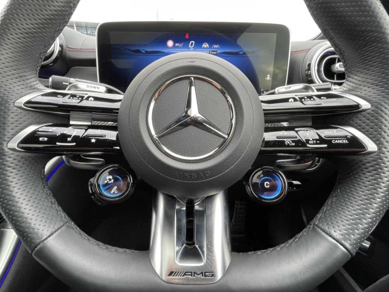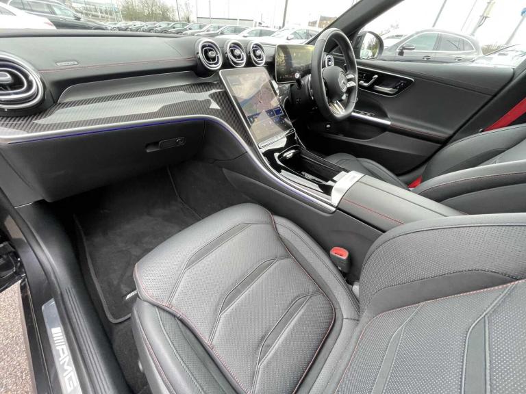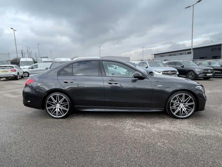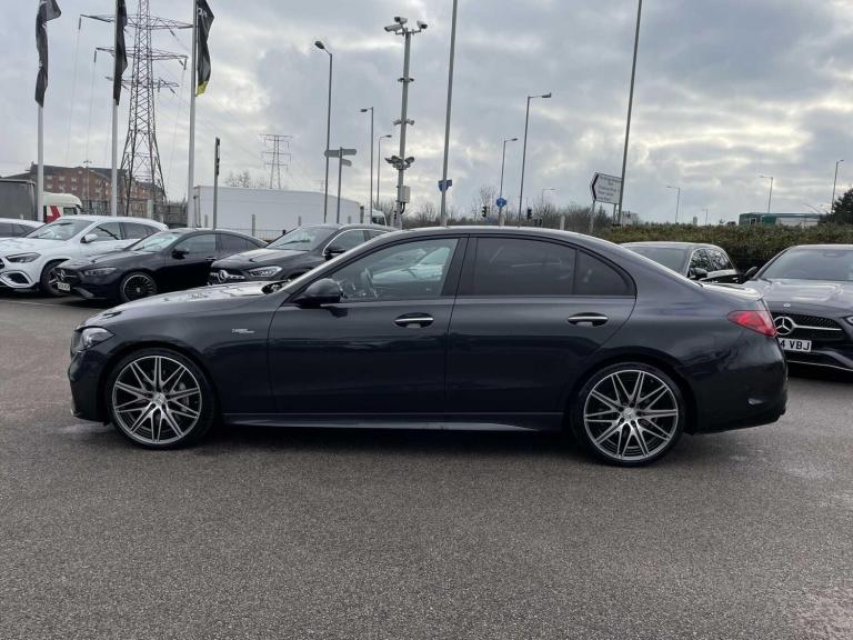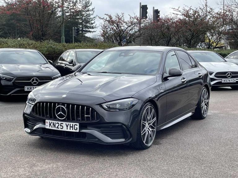 This 2025 Mercedes-Benz C Class C43 AMG Night Edition (Premium Plus) is a Mercedes-Benz manufacturer approved vehicle, boasting a full service history for your peace of mind. This striking example features the distinctive AMG Night Edition trim and is powered by an efficient 2.0L Petrol Hybrid engine, delivering impressive performance through its Four Wheel Drive system. It meets the Euro 6 emission standards, combining power with responsible engineering.Experience exhilarating performance with this C43 AMG, capable of accelerating from 0 to 62mph in a remarkable 4.3 seconds. This rapid acceleration indicates a superior driving experience compared to many other vehicles in its class. The Premium Plus designation suggests a high level of specification, ensuring a luxurious and technologically advanced journey for every occupant.