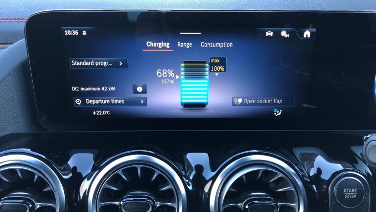 Discover the 2025 Mercedes Benz EQA 250+ Urban Edition, an electric vehicle designed for modern driving. This EQA boasts a substantial 78 kWh battery, offering a maximum range of 320 miles when new, ensuring you can travel further on a single charge. For your comfort, it features THERMATIC automatic climate control and heated front seats, all managed through the impressive Mercedes Benz Sound System.The EQA 250+ Urban Edition provides a convenient charging experience. A full charge at home using a 7kW charger takes approximately 10 hours and 45 minutes, perfect for overnight top ups. For faster charging on the go, you can reach 80% capacity from empty in just 40 minutes at a public charging station. These charging times and the impressive 320 mile range highlight how this Mercedes Benz offers excellent usability and convenience compared to other electric vehicles.