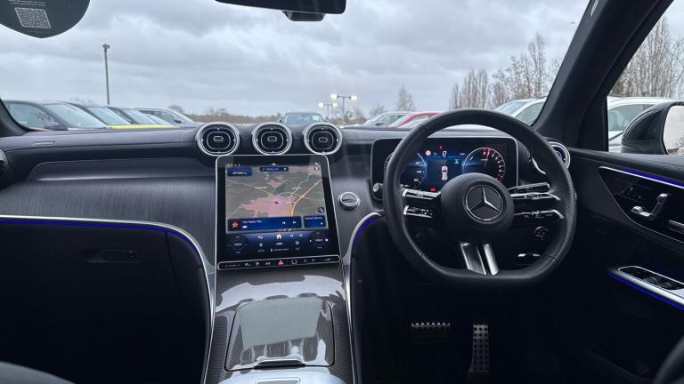 This 2025 Mercedes Benz GLC300e AMG Line Premium SUV is a compelling example of how a modern plug in hybrid can meet real world family and business needs. As an ex demonstrator it presents in excellent condition and benefits from the latest technology and specification.Practicality is a clear strength. The spacious five door SUV body offers generous rear legroom and a versatile boot that suits daily duties or longer trips. Hands free access and the EASY PACK tailgate make loading straightforward, while the 360 Degree Camera removes stress from tight car parks. Four wheel drive 4MATIC adds confidence in poor weather and on uneven surfaces.Economy is where the GLC300e truly impresses. The 31.2kWh battery supports meaningful electric only driving for short commutes, helping reduce fuel costs and emissions. On board AC charging up to 11 kW and direct current charging up to 200 kW provide flexibility at home and on the road, making longer journeys easier to plan without compromise.Comfort is assured through the AMG Line Premium specification. Black heated leather seats with memory deliver excellent long distance support, complemented by a panoramic sliding sunroof that brightens the cabin. The Burmester 3D surround sound system and MBUX satellite navigation create a refined and intuitive driving environment, while wireless mobile phone charging and Apple CarPlay keep everyday connectivity simple. A head up display ensures key information stays in your line of sight.Safety and innovation are equally well served. DIGITAL LIGHT enhances night time visibility, and advanced driver assistance systems work quietly in the background to protect occupants. The fingerprint scanner adds an extra layer of personal security, and the 20 inch AMG alloy wheels complete the confident road presence finished in Obsidian Black metallic.Buying from Vertu Mercedes Benz Beaconsfield brings added reassurance. This vehicle is prepared by manufacturer trained technicians and supplied with a comprehensive warranty, ensuring peace of mind from day one..Air Conditioning, Climate Control, Metallic Paint, Cruise Control, Satellite Navigation, Alloy Wheels, Leather Seats, Heated Seats, DAB Radio, Bluetooth, Panoramic Roof, Parking Sensors, Stop Start, USB, Park Assist, Ex Business, Manufacturer Approved, Sun Roof, Electric Seats, Memory Seats, Keyless Entry-Push Button Start, Apple-Android Play, Rear Camera, Electric Opening Tailgate, Auto Lights, Electric Folding Mirrors, Lane Departure, Lane Keeping Assist, Pre Crash Prevention, Rain Sensors& 4x4, Black floor mats with AMG lettering, Rear wiper, Rain sensor windscreen wipers, Heat insulating dark tinted glass, Heated rear window, Front and rear electric windows, Variable front intermittent wipers, Noise acoustic glass, Electronic parking brake, Brake calipers with Mercedes-Benz lettering + perforated brake discs, Active braking assist, Electronic stability programme (ESP) with curve dynamic assist and cross wind assist, Anti-lock Braking System (ABS), ASR traction control