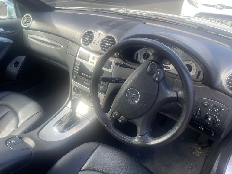 MERCEDES 200 CLK COUPE AVANTGARDE 57 REG IN SILVER WITH FULL BLACK LEATHER TRIM LAST OWNER FOR 14 YEARS NEW ALLOYS FULL COMPREHENSIVE HISTORY TWO KEYS. MOT AUG 2026 INSPECTION WELCOME