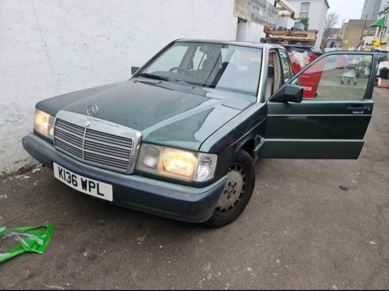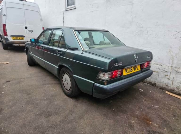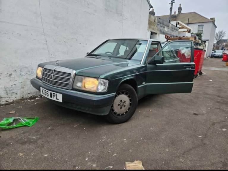 The Mercedes 190E 2.0 1993 Automatic is a stylish saloon car with a right-hand drive. Also has a sunroof. It has a tan interior and a striking bottle green exterior, reflecting a classic European aesthetic. This automatic transmission vehicle offers comfortable seating for five passengers and boasts four doors for easy access and exit. Manufactured by Mercedes-Benz, this petrol-driven vehicle combines luxury and performance in one sleek package, making it a desirable choice for car enthusiasts.