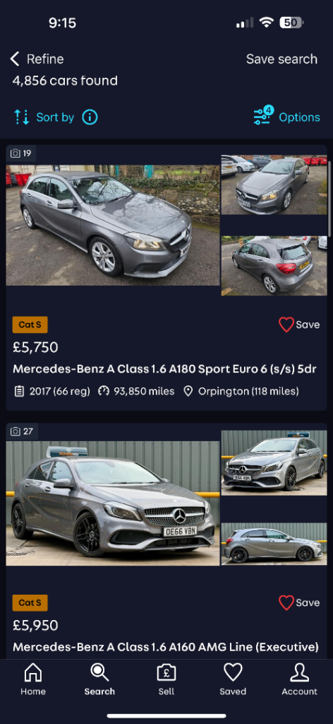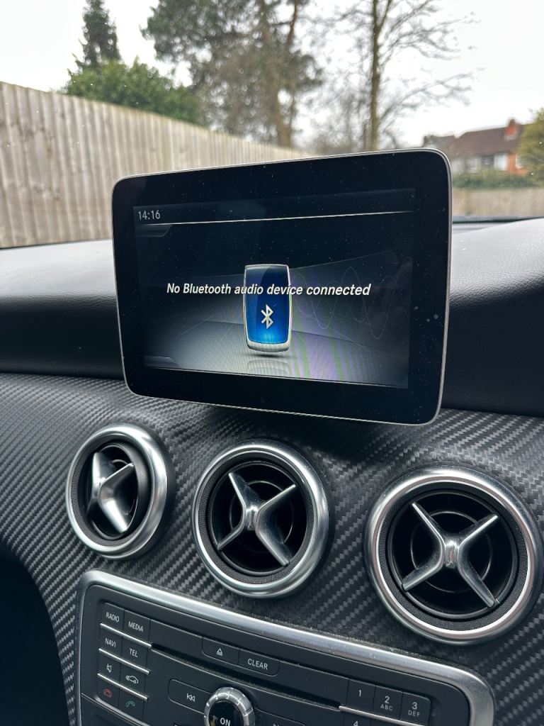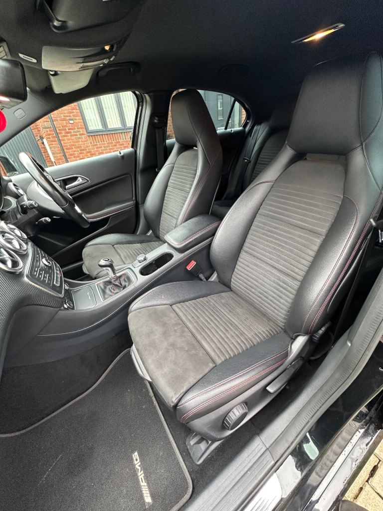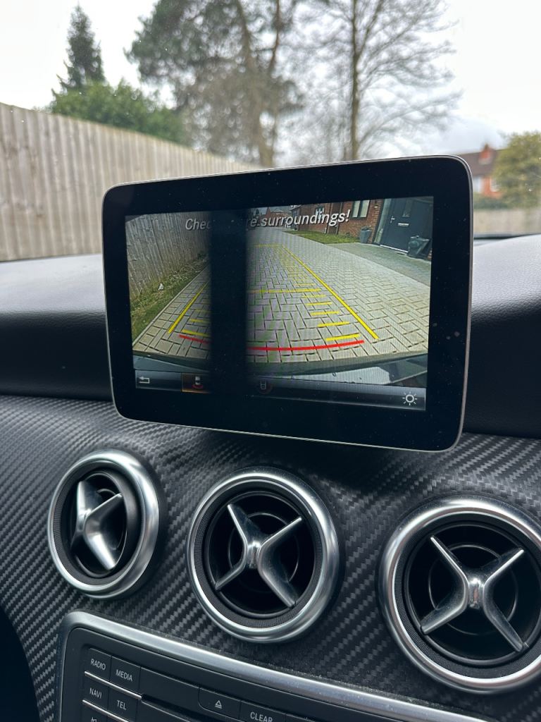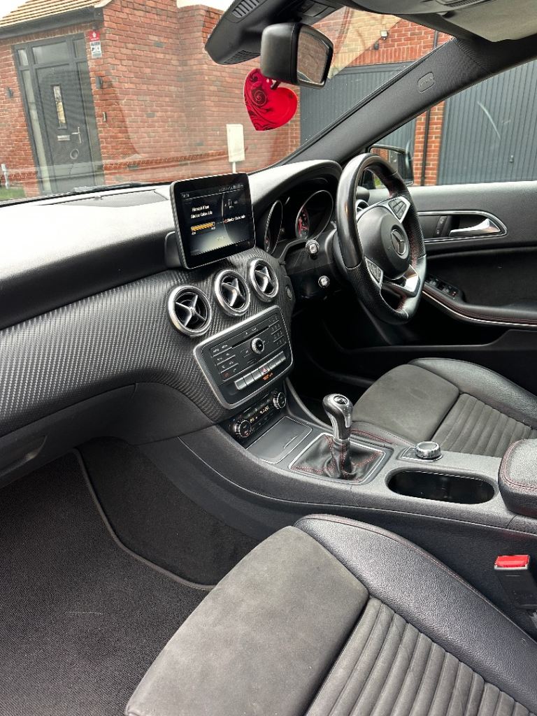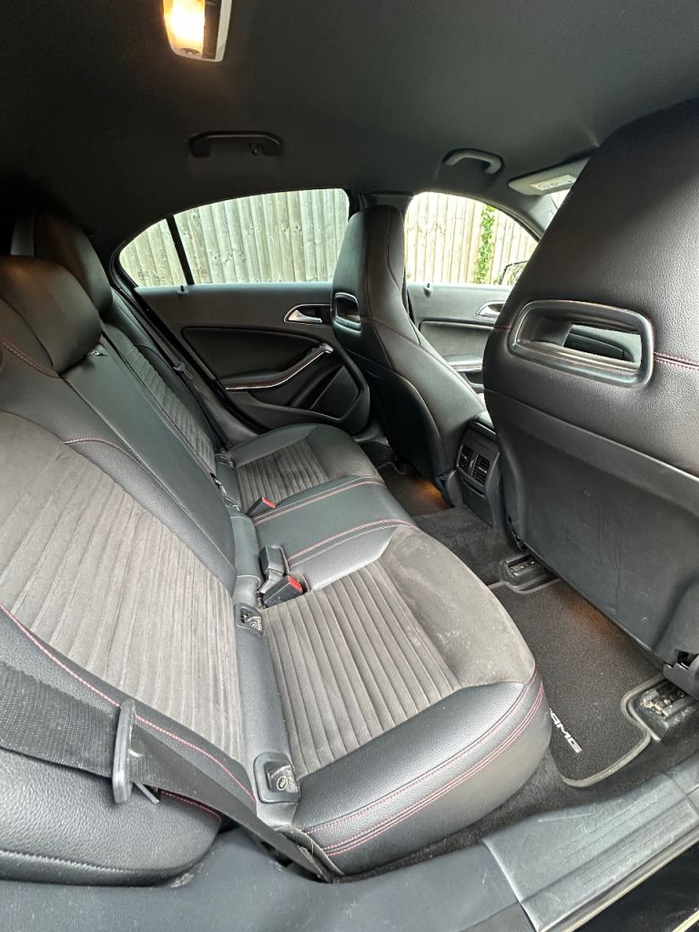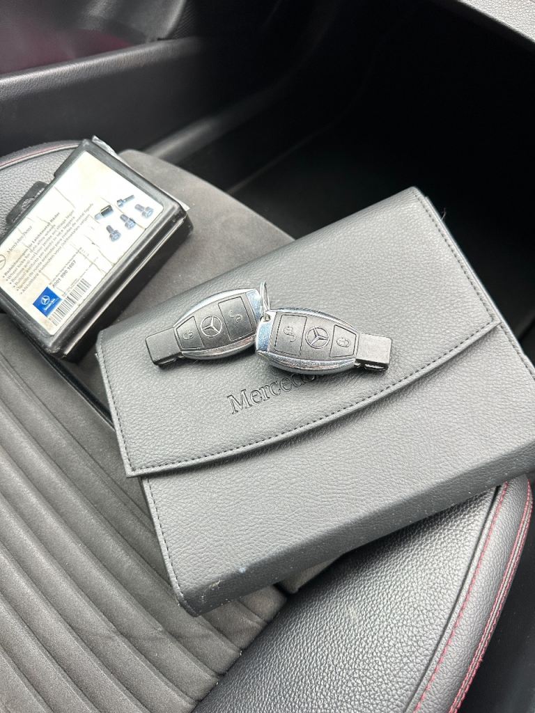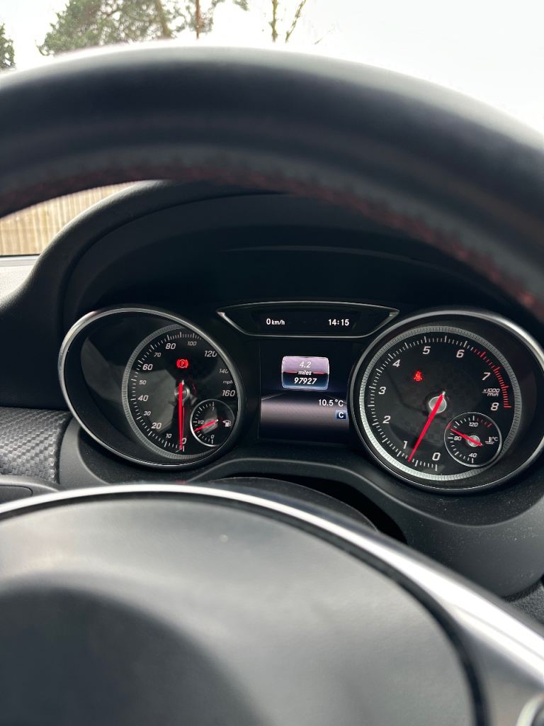 Good spec with reverse camera, Bluetooth media, CarPlay, electric windows, electric mirrors, drive select modes, auto headlights, flat bottom steering wheel, AMG Floor mats, half leather alcantara seats, other usual refinements…