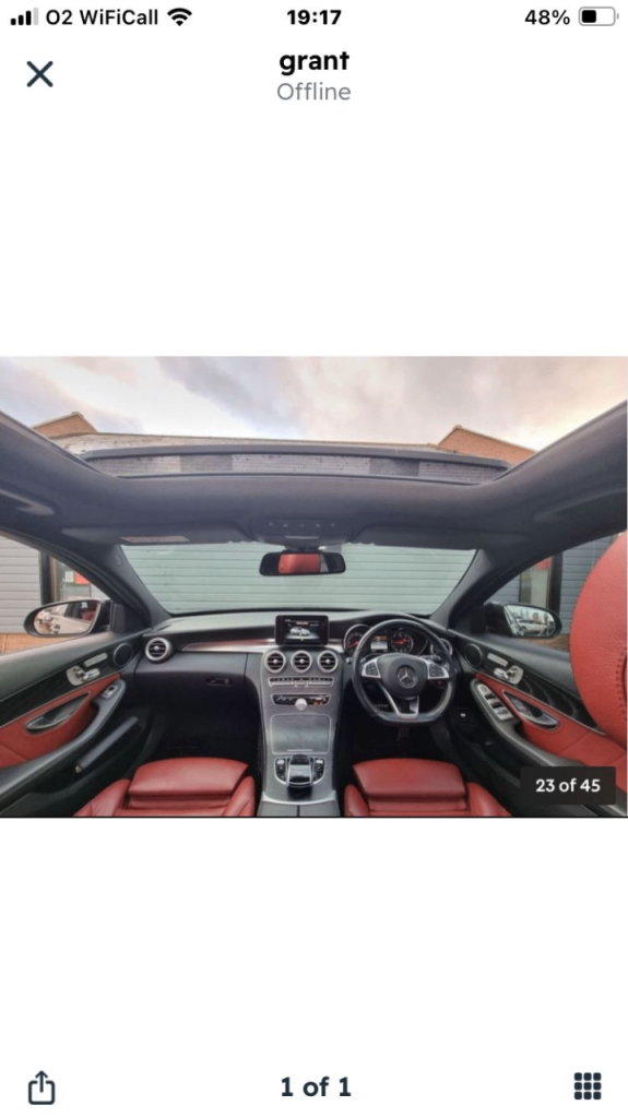 C220!amg premium plus. Stunning black with burgundy leather. New brakes, 4 new tyres. Good service history and just had a service. Drives perfectly. 2 keys. Ulez compliant and very good miles per gallon. Mot till 16th August. All usual features plus some upgrades. Reluctant sale due to needing something bigger to tow A caravan.