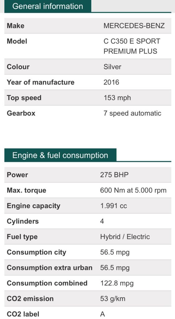Posting for 12+ yearsMercedes-Benz, C CLASS, C350e, Sport Premium Plus, Estate, 2016, Semi-Auto, 1991 (cc), 5 doors