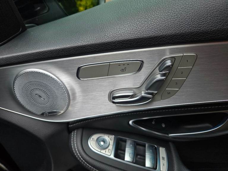 Panoramic sunroof with rain sense, electric seats with memory function, Burmester premium sound system, electric tailgate, keyless entry and keyless go, park assist with space finder and assisted (semi automatic) parking, Mercedes connected app and more.