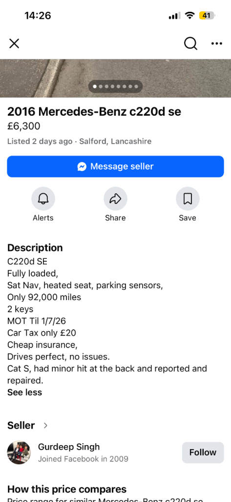 Posting for 7+ yearsMercedes-Benz, C CLASS, Saloon, 2016, Semi-Auto, 2143 (cc), 4 doors
