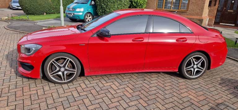 Red 2013 Mercedes-Benz CLA 2.2 Diesel AMG Sport with 92,600 miles and MOT valid until November 2026 with no advisories. AMG Sport model with genuine AMG Sports trim and offers a great blend of performance and efficiency from its strong yet economical 2.0 diesel engine, paired with paddle shift automatic transmission for a more engaging drive. It comes with full leather interior, heated seats, tinted windows, 2 keys, part service history and has been recently serviced, so it’s ready to drive away with confidence. The upgraded wide screen information system includes Apple CarPlay, Android Auto, WiFi, Bluetooth and satellite navigation. Reverse sensors front and back with camera. It also benefits from Collision Prevention Assist and Parking Assist for added safety and convenience. The car drives superbly, looks stunning in red, and offers both comfort and practicality with 4 doors and generous boot space. Genuine reason for sale, only selling due to needing a bigger car.