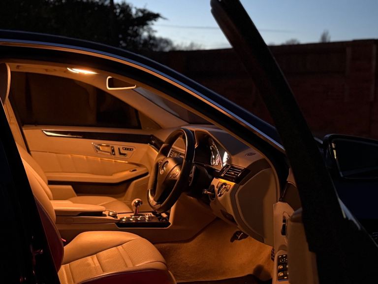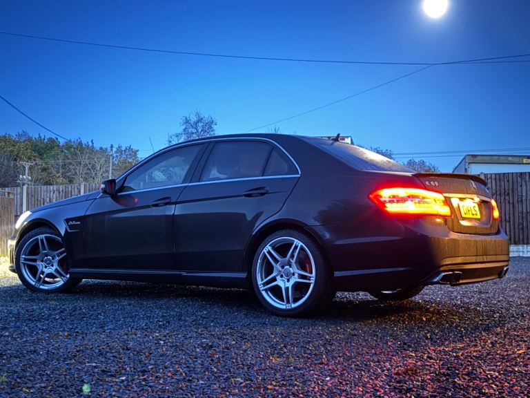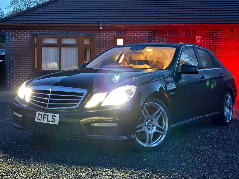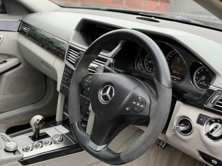 THIS STUNNING MERCEDES BENZ E63 AMG WHICH HAS A MASSIVE 525BHP IT HAS SERVICE HISTORY AND GREAT SPEC INCLUDING 19" ALLOY WHEELS, FULL LEATHER INTERIOR, PRIVACY GLASS, STEERING WHEEL CONTROLS, WITH PARKING SENSORS, CD RADIO/MEDIA, SAT NAV, BLUETOOTH AIR CON, HEATED SEATS AND MUCH MUCH MORE. MOT AND SERVICED, 19in AMG 5 Twin Spoke Alloy Wheels, AMG Sports Steering Wheel, Black Ash Wood Trim, Heated Front Seats, Model designation deletion.