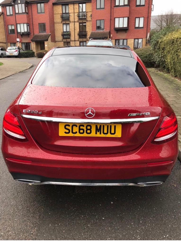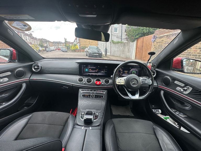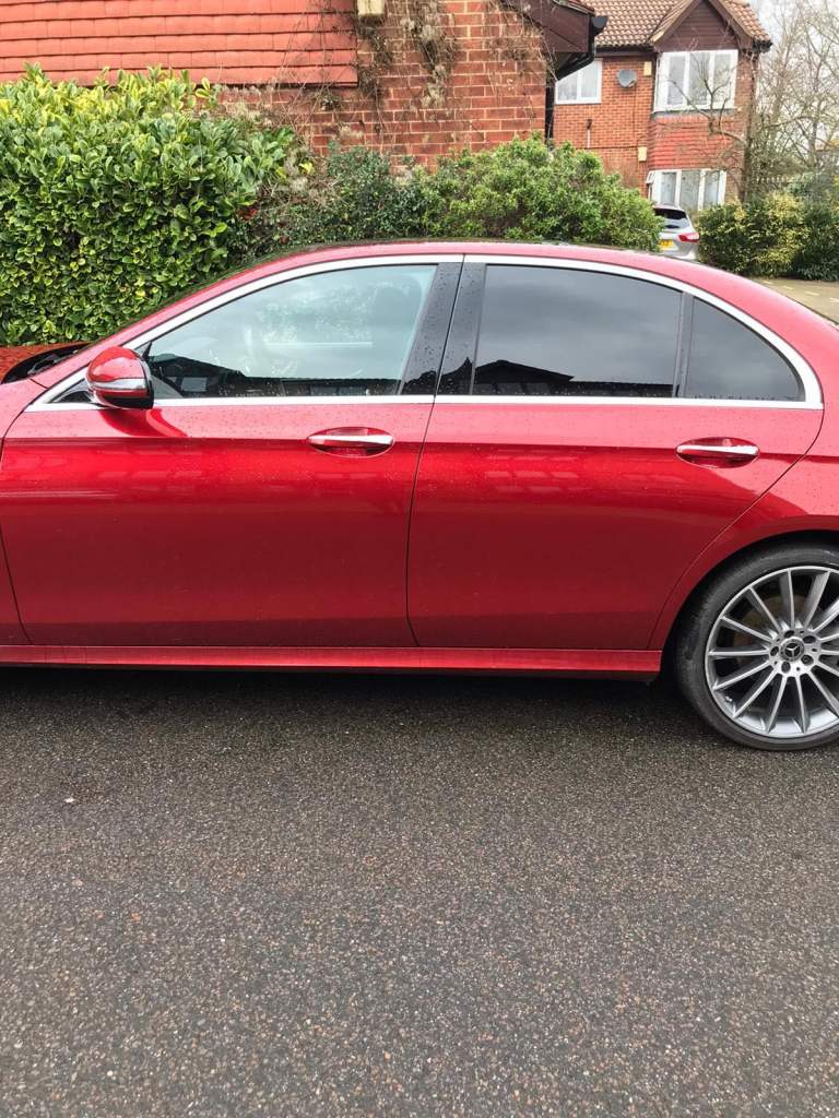 Red Mercedes-Benz E220D AMG Line Premium