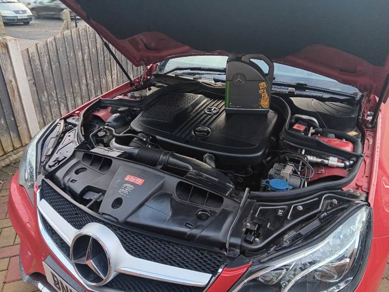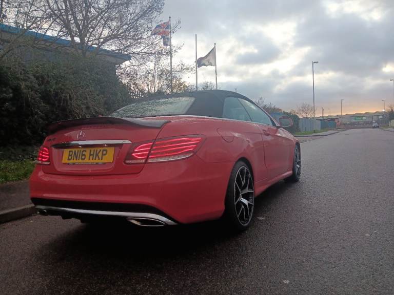 EURO 6 ENGINE. This DIESEL POWERED AUTOMATIC ULEZ FRIENDLY E220 AMG LINE 2 DOOR CABRIOLET IS FINISHED IN METALLIC RED WITH BLACK LEATHER HEATED PART ELECTRIC SEATS. IT IS FITTED WITH A HUGE SPECIFICATION, IT INCLUDES 19" ALLOYS, FRONT AND REAR PARKING ASSIST, POWER FOLD MIRRORS, DAB, NAVIGATION, LED INTELLIGENT LIGHTS, CRUISE CONTROL AND LIMITER AND MUCH MORE.. CAN DELIVER..