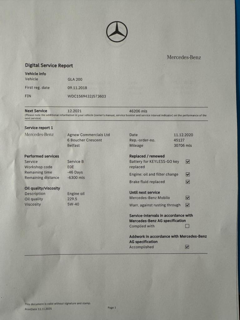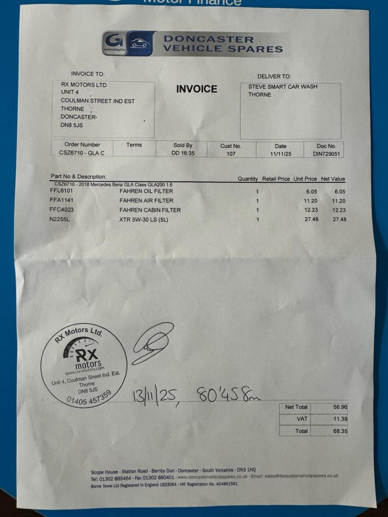 FINANCE AVAILABLE - ENQUIRE WITHIN AT RX MOTORS TO AVOID 3RD PARTY ADMIN FEES! FINANCE AVAILABLE - ENQUIRE WITHIN AT RX MOTORS TO AVOID 3RD PARTY BROKER FEES! This 2018 Mercedes Benz GLA200 Sport (Executive) benefits from a clear vehicle history check and a recent service in November 2025 at 80,458 miles, ensuring peace of mind for its next owner. This Euro 6 compliant 1.6 litre petrol model offers a smooth driving experience, enhanced by its Sport trim and Executive package. Key features include heated seats for comfort, parking assistance with front and rear sensors, and an automatic headlamp activation system for convenience in varying light conditions. The GLA200 Sport (Executive) also boasts a reversing camera with a 180 degree view, making manoeuvring easier. For seamless connectivity, it includes Smartphone Integration with both Android Auto and Apple CarPlay, alongside the Audio 20 Radio CD system with Bluetooth. With an impressive 0-62mph acceleration time of just 8.1 seconds, this Mercedes Benz offers spirited performance. Furthermore, its generous boot space provides ample room for luggage or shopping, setting it apart from many other vehicles in its class. A 12 month MOT will be provided on purchase, and a 3 month warranty is included.