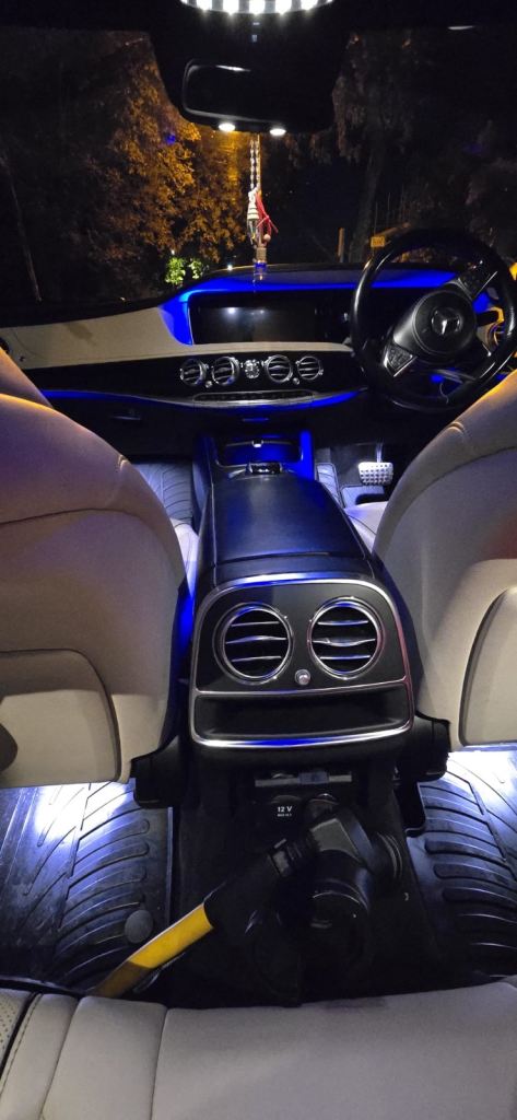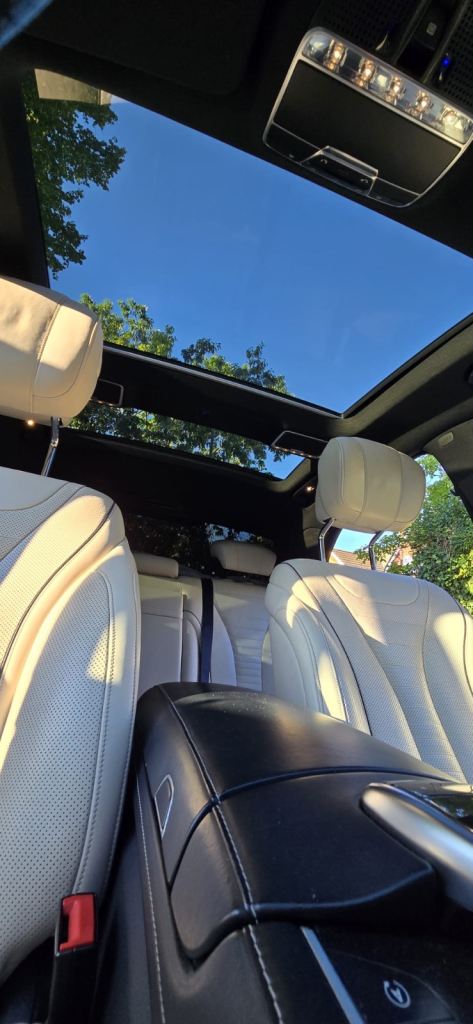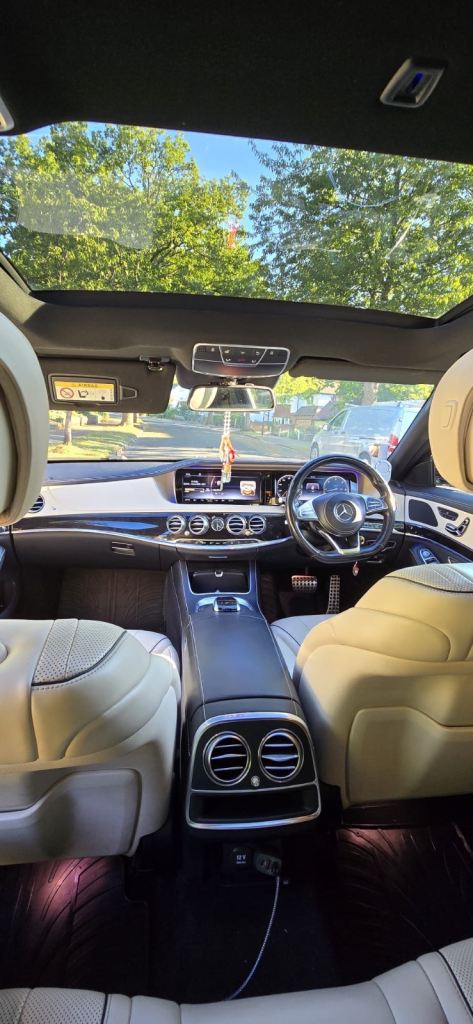 Electric windows, 20" MAYBACK alloy wheels with good tread on tyres all round, front and rear parking distance control (PDC), Reverse Camera and Parking Aid system, Air conditioning blowing ice cold, Heated front a rear leather seats, power fold mirrors, traction control, climate control, electric heated door mirrors, on board computer, factory Sat Nav, Bluetooth connectivity, premium sound system, Genuine remote key with central locking, multi-function steering wheel. No pets or children, everything works as it should, drives absolutely spot on, this car drives true and straight, mechanically sound, full service history from mercedes and various other garages all stamps and detailed receipts included.