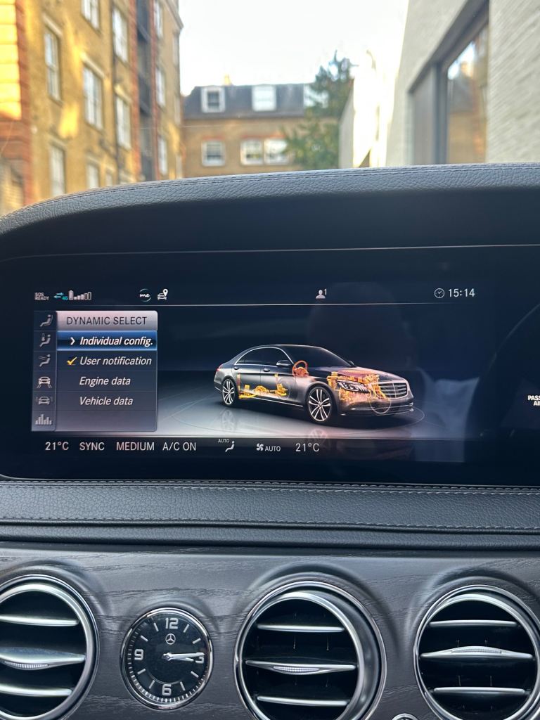 sliding Panoramic Roof, Driving Assistance Package, Executive Rear Seats, Rear Entertainment, 360 Surround View Camera, Burmester Premium Sound, Climate Memory Front and Rear Seats, Comand, Finished in Iridium Silver Paint with Black Leather Interior, on 20" Alloys. Active Parking Assist, Distronic Plus, Memory Package, Rear Memory Feature, Soft Close Doors, Massaging Front Seats With Dynamic Seat, Adaptive High Beam Assist Plus, Quad Zone Climate Control, Adjustable Ride Height, Read Headrest Cushions, Winged Headrests, Extended Leather Dash and Door Trim, Adaptive Cruise Control, Keyless Go Package, Energizing Comfort Control, Rear Privacy Glass, Illuminated Door Sills, Pan Roof, Pano Roof, Panorama Roof, Sunroof, Glass Roof.