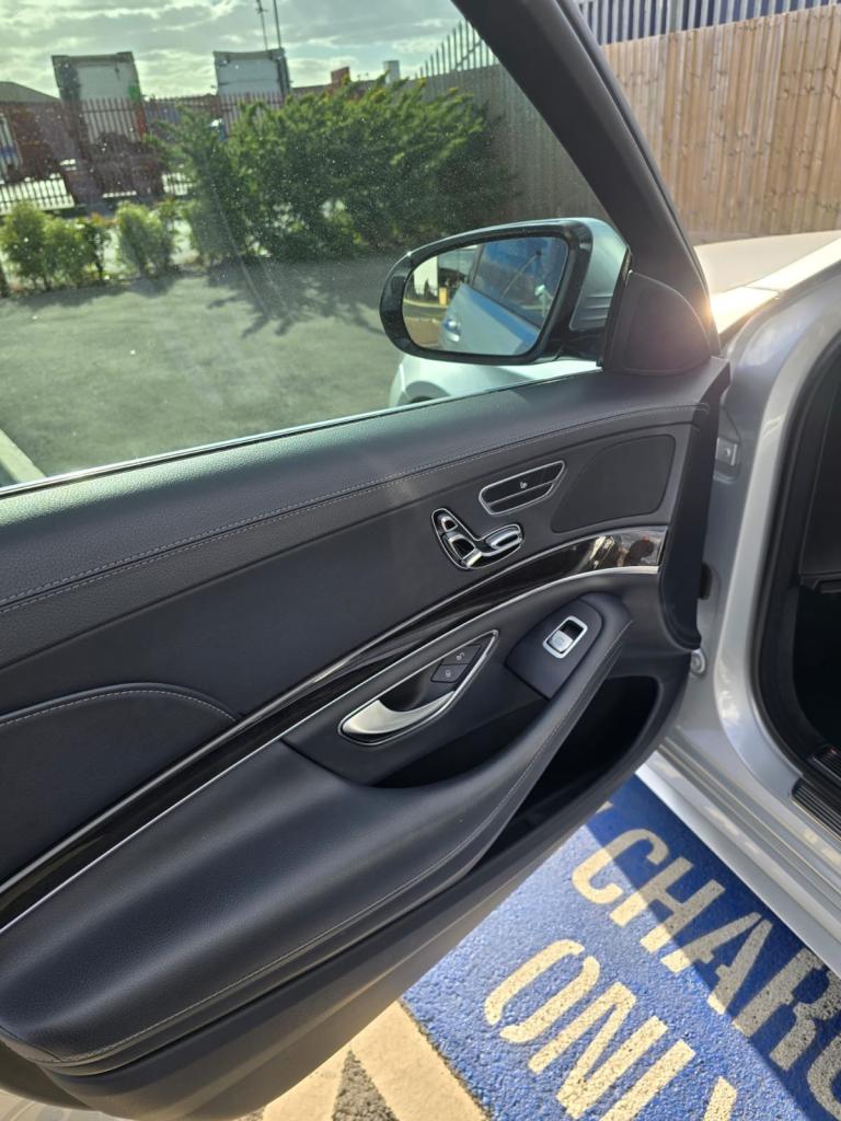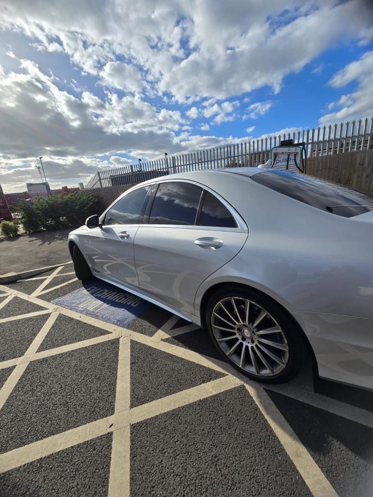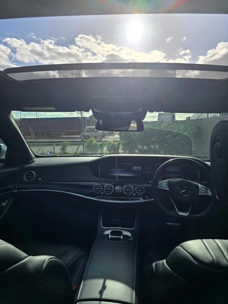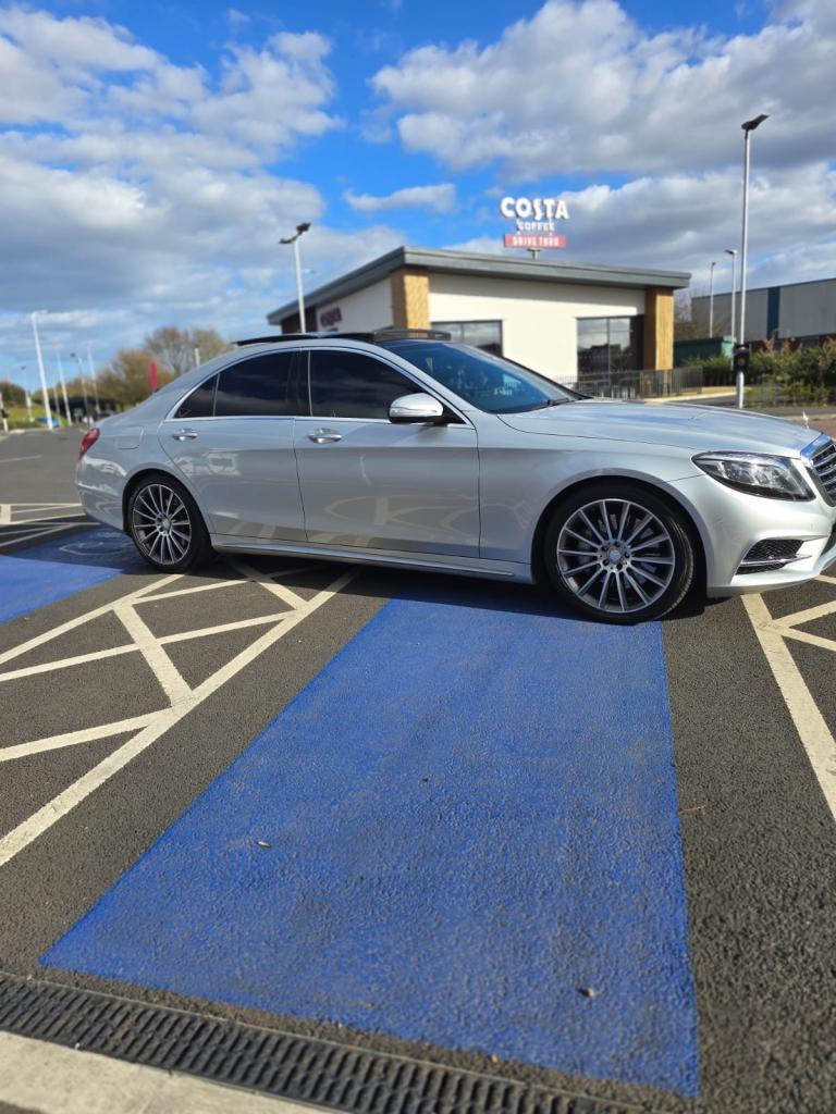 Mercedes S350d AMG Line, finished in metallic white with black leather interior and panoramic glass roof. In excellent condition with only 46,000 miles, full service history, MOT until December 2025, and 2 previous owners.
