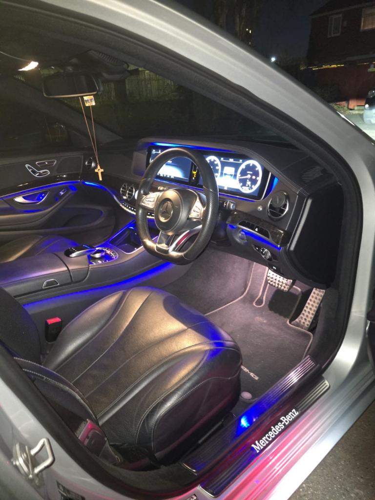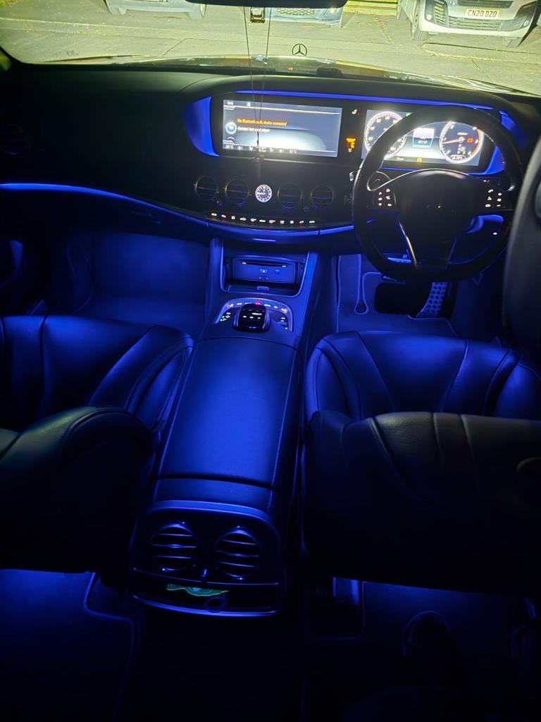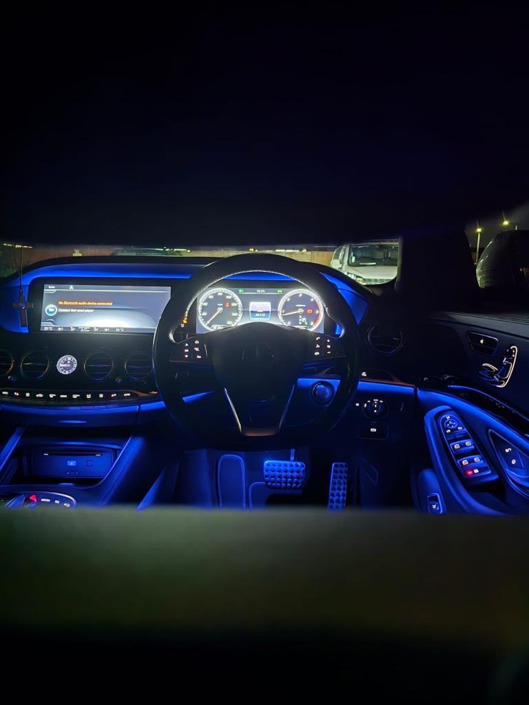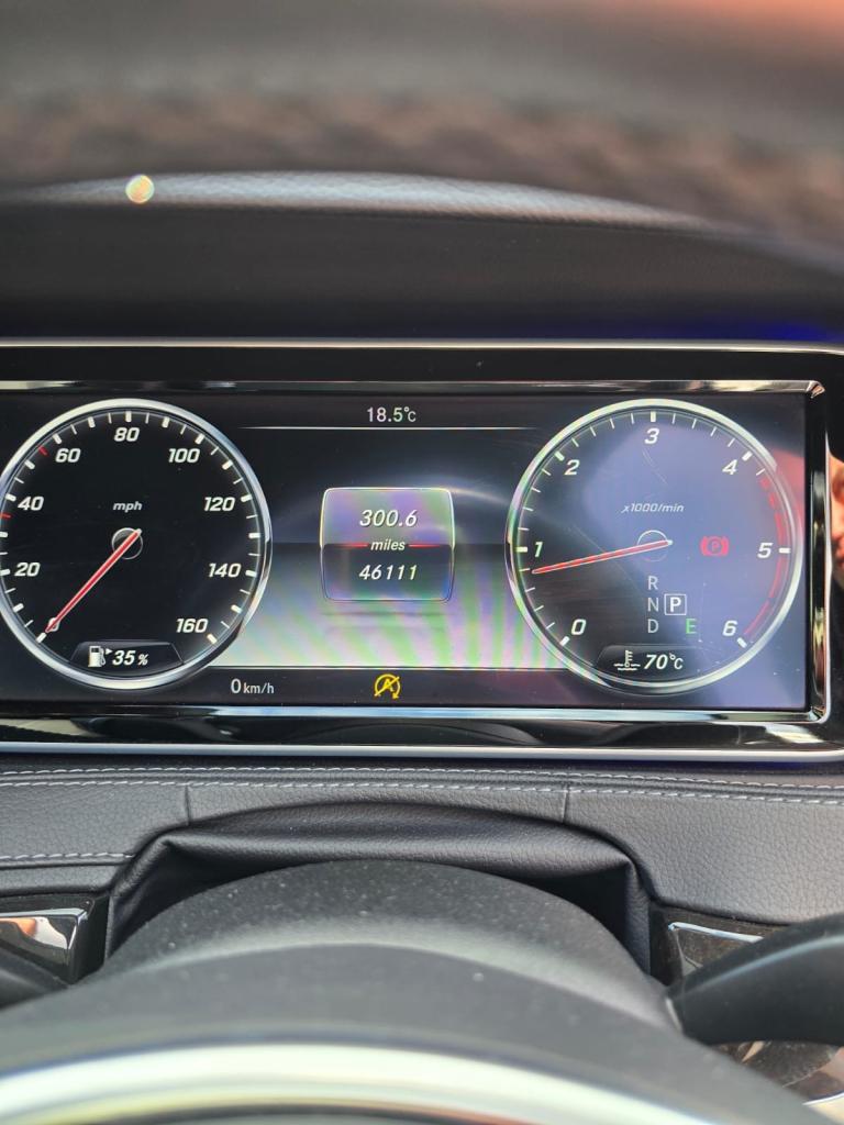 Mercedes S350d AMG Line, finished in metallic white with black leather interior and panoramic glass roof. In excellent condition with only 46,000 miles, full service history, MOT until December 2025, and 2 previous owners.