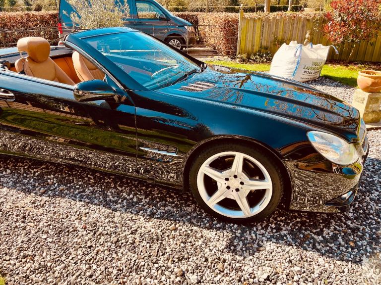 Mercedes SL350 7-Gtronic. Purchased in spring last year by my father in-law, I am updating a couple of bits on the advert as I was unaware of a some extra details as I am selling for my mother in law (please note that it shows nine owners as it has now been transferred to my mother in laws name) work carried out has included all major issues which were raised on the previous MOT when purchased, I have just put a new MOT on and also a new auxiliary battery for the folding roof in addition to other work that was carried out with genuine Mercedes parts (please see photos) In addition I am now aware there are two sets of keys, I have a video of the roof in full working order up/down if required so feel free to ask (I couldn't manage to upload it) This car is in beautiful condition with a unique leather and walnut inset option that is hard to find other than the standard black. I have included a photo of the car report showing services please feel free to call me if you need any further information.