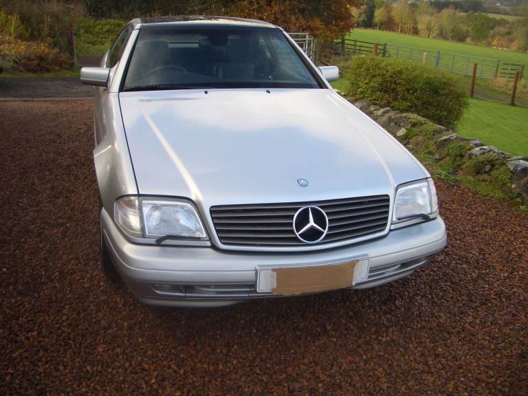 Mercedes SL 320 Convertible. 1997, Auto, Silver with Black Nappa Leather , Full Mercedes service history from new. 69878 miles. 1 previous owner. I have owned this car for 26 years and has always been garaged. Car will be MOT'd when sold. Glass panoramic roof with black convertible soft top roof unmarked , Auto. 2 Keys , Mercedes carpet mats , CD multiplayer in boot. Straight 6 cylinder. All original. Spare wheel has never been on car . Non Smoker, Comes with mobile hard top storage frame and cover. £12000.00