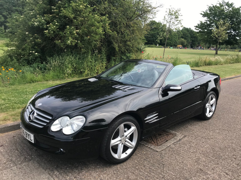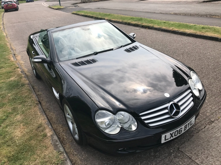 MERCEDES SL350 ( 3.7 V6 ) 2006 06reg AUTO , FINISHED IN OBSIDIAN BLACK WITH GREY LEATHER TRIM , WITH ONLY 66,000 MILES ,MOT JAN 2026 ..