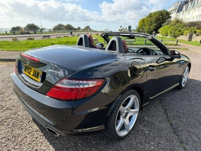 Stunning Black SLK WITH RED LEATHER INTERIOR, NEW MOT 07/04/2027 NO ADVISORIES, comes with our 3 month warranty. 4x NEW TYRES AND REFUNISHED ALLOY WHEELS UPGRADES: AIRSCARF- Neck Level Heating System, designo Single Tone Leather - designo Classic Red, Seats - Sports, Heated Front Seats, Standard spec: Steering Wheel - Gear Shift Paddles, Steering Wheel - Multi-Function, Steering Wheel - Sports-3-Spoke-Multifunction-Trimmed Nappa Leather-Flat Bottom, 5.8in Colour Display, AUX-In Socket and USB Interface in the Centre Armrest, Audio 20 Radio System, Bluetooth Interface for Hands-Free Telephone, DAB Digital Radio Tuner, Integrated 6-CD Changer, Pre-Wiring for Becker Map Pilot Navigation System, Speakers x8, Telephone Keypad, ATTENTION Assist, Central Controller Dial to Operate Audio and Telephone Functions, Cruise Control, 18in Alloy Wheels - AMG 5 Spoke Design, AMG Bodystyling, AMG Bodystyling - Front and Rear Apron - Side Skirts, Door Mirrors - Electrically Adjustable and Heated, Air Conditioning, Electric Windows - Front, Remote Central Locking, Alarm, Electro-Hydraulic Vario-Roof, Exhaust System - Two Chrome Tailpipes, Headlights with Dark Surround and Dark Tinted Tail Lights, Multi Airbags, , Tinted Glass - Green, Daytime Running Lights - LED, Headlamp Assist - Automatic Headlamp Activation, High Level Third Brake Light - LED, LED Tail Lights, Door Sill Panels - Mercedes-Benz Lettering, Trim - Brushed Aluminium, Power Assisted Steering, Sports Suspension, Sports Pedals - Stainless Steel with Rubber Studs, Steering Column - Manually Adjustable for Height and Reach, Spare Wheel - Space Saver. 2 keys and bookpack. Warranty option to upgrade with Warranty Wise, AWARDED HIGHLY RATED FROM AUTOTRADER 2021, 2022, 2023, 2024 and 2025! WE ARE A FAMILY RUN BUSINESS WITH OVER 30 YEARS EXPERIENCE IN THE CAR TRADE, FINANCE AND PART EXCHANGE OPTIONS AVAILABLE, FULL DEALER FACILITIES, CHECK OUR REVIEWS! ONLY 5 MINS FROM BMTH RAIL STATION, WWW.KJPRESTIGE.CO.UK