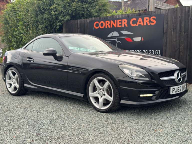 2012 62 Plate Mercedes-Benz SLK250 AMG Sport CDI 2.1 Diesel, Automatic, Covered 85,000 Miles Equipped with power steering, remote central locking, automatic headlights, radio, CD player, Bluetooth, air-conditioning, 18 inch alloy wheels black leather trim, traction control, multifunction steering wheel Part Exchange Available This Vehicle Comes With 3 Months AA Warranty, 2 keys And M.O.T Till 9th March 2026