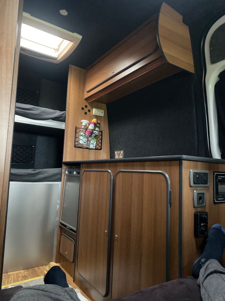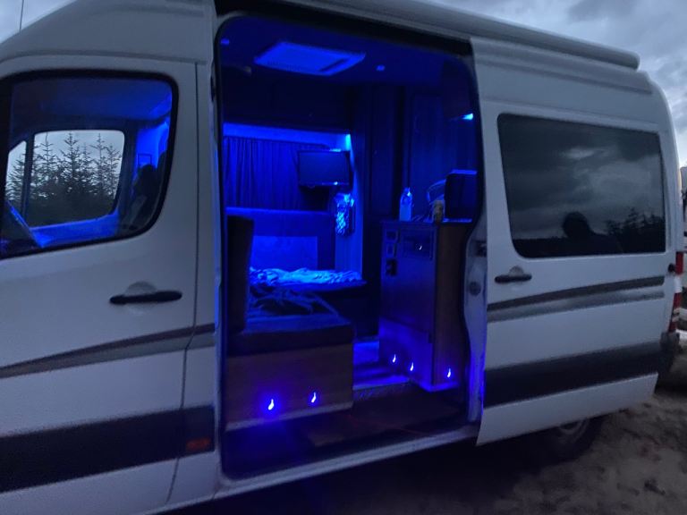 Tv , fridge,freezer, hob an sink , gas heater with gas locker in boot , habitation check every year , registered as a camper on log book loads of storage and a shower room fitted , the camper comes fully loaded an ready to take off on your next adventure.