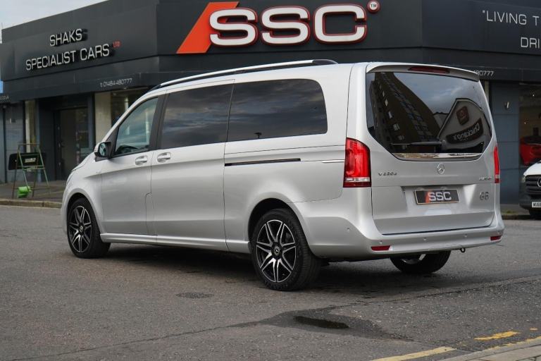 Stunning V220d AMG Line XLWB Finished In Silver Metallic With Black Nappa Leather. Fantastic Spec Inc: COMAND Online, Rear Camera, 8 Seat Pack, Heated Front Seats, Active Brake Assist, Agility Control Suspension, DAB, Auto Dimming Mirrors, AMG Line Trim, 19" AMG Line Alloys, Electric Folding Mirrors, Mirror Pack, Convenience Opening Remote Control, Electric Sliding Doors, Traffic Sign Assist, Ambient Lighting, LED Intelligent Light System, High Beam Assist, Cruise Control, Electric Rear Windows, Easy Pack Tailgate. This V Class Comes With Full Service History and Remainder Of Manufacturers Warranty. VAT QUALIFYING.